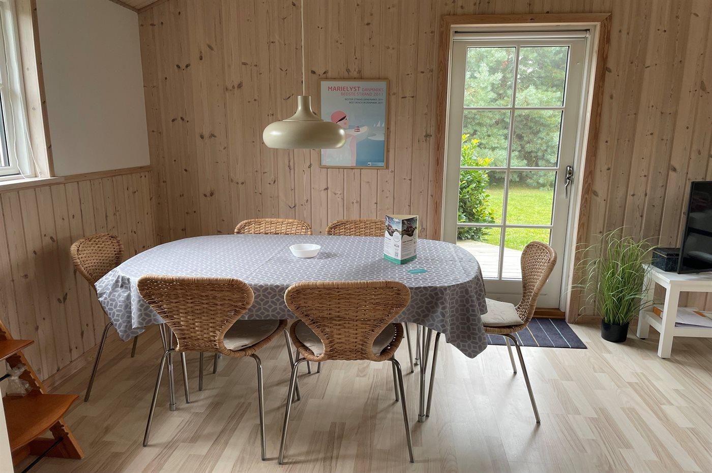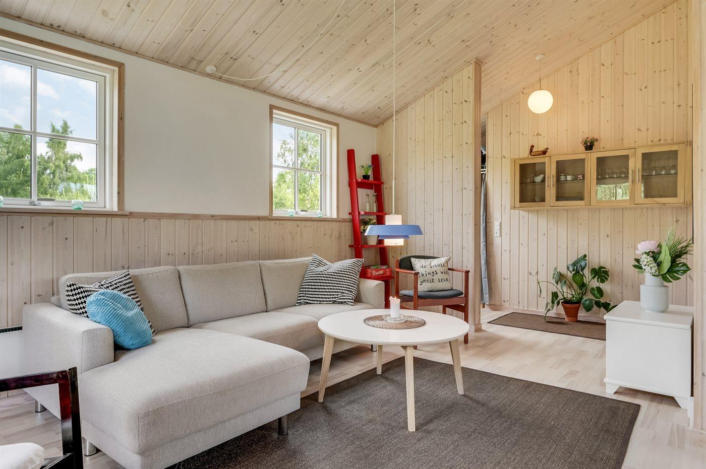 Dejligt og lyst sommerhus beliggende i et roligt område nær vandet og børnevenlig badestrand.