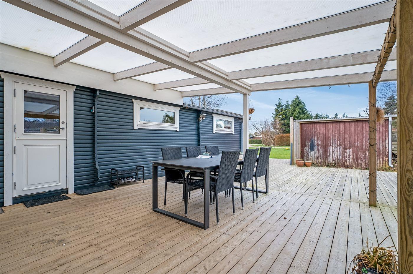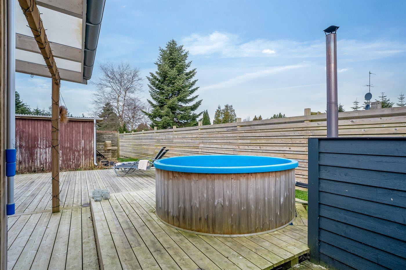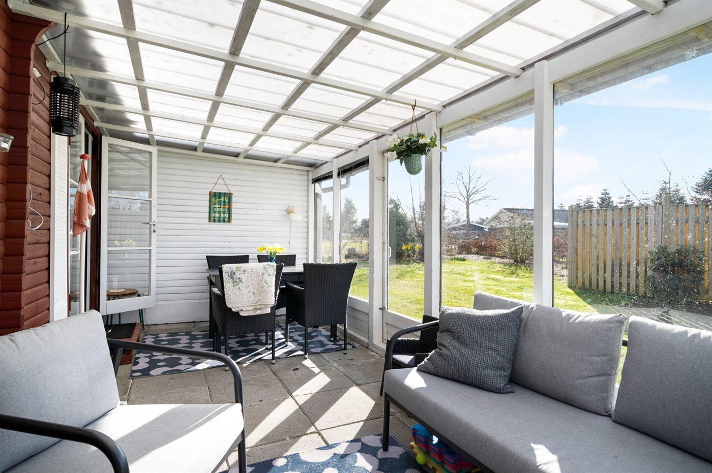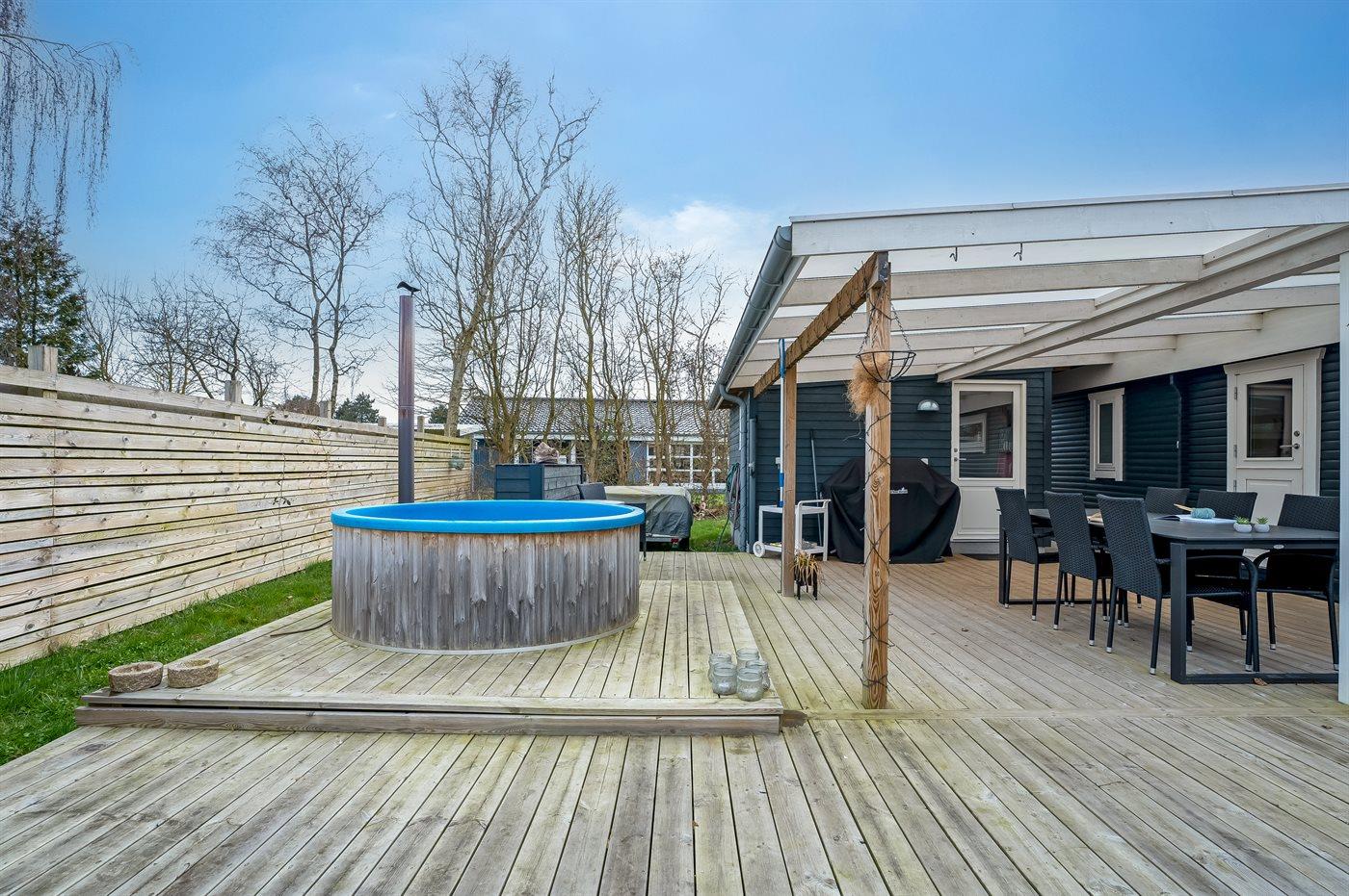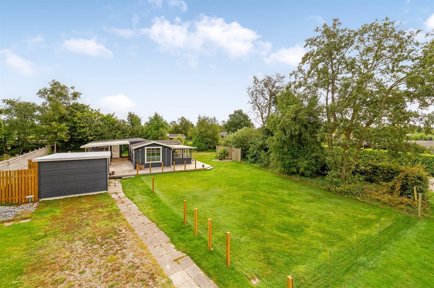 Ferieboligen er beliggende på en 1000 m² stor naturgrund. Der er 750 m til havet. Nærmeste forretning er beliggende i en afstand af 500 m. Der er en golfbane i en afstand af 500 m. Til ferieboligen hører åbent terrasseareal. Desuden er der overdækket terrasse. Ligeledes er der adgang til udestue. Der er redskabsrum. Der ligger en legeplads i en afstand af 700 m. Bålsted. Grill til rådighed. Parkering ved ferieboligen.