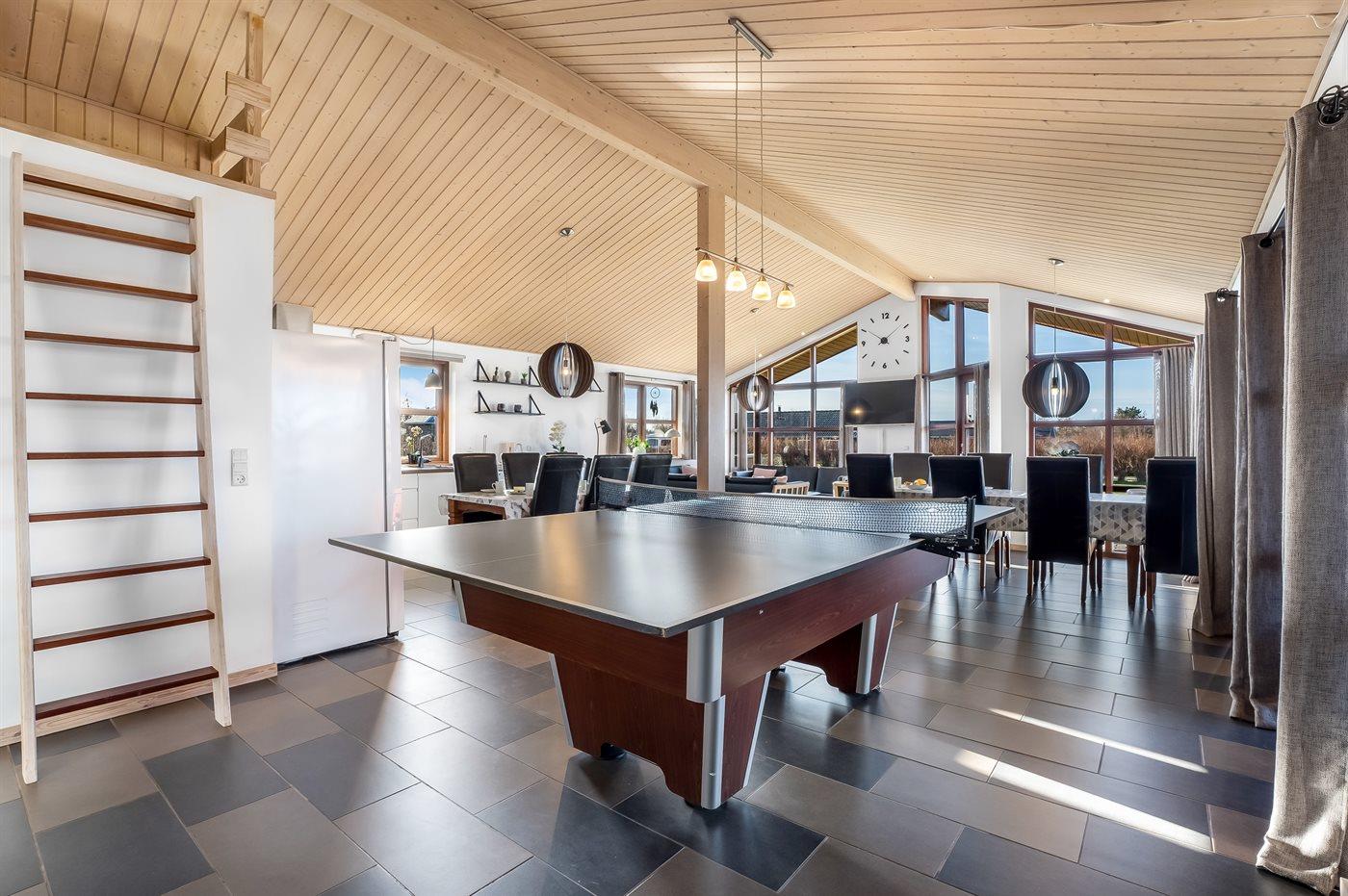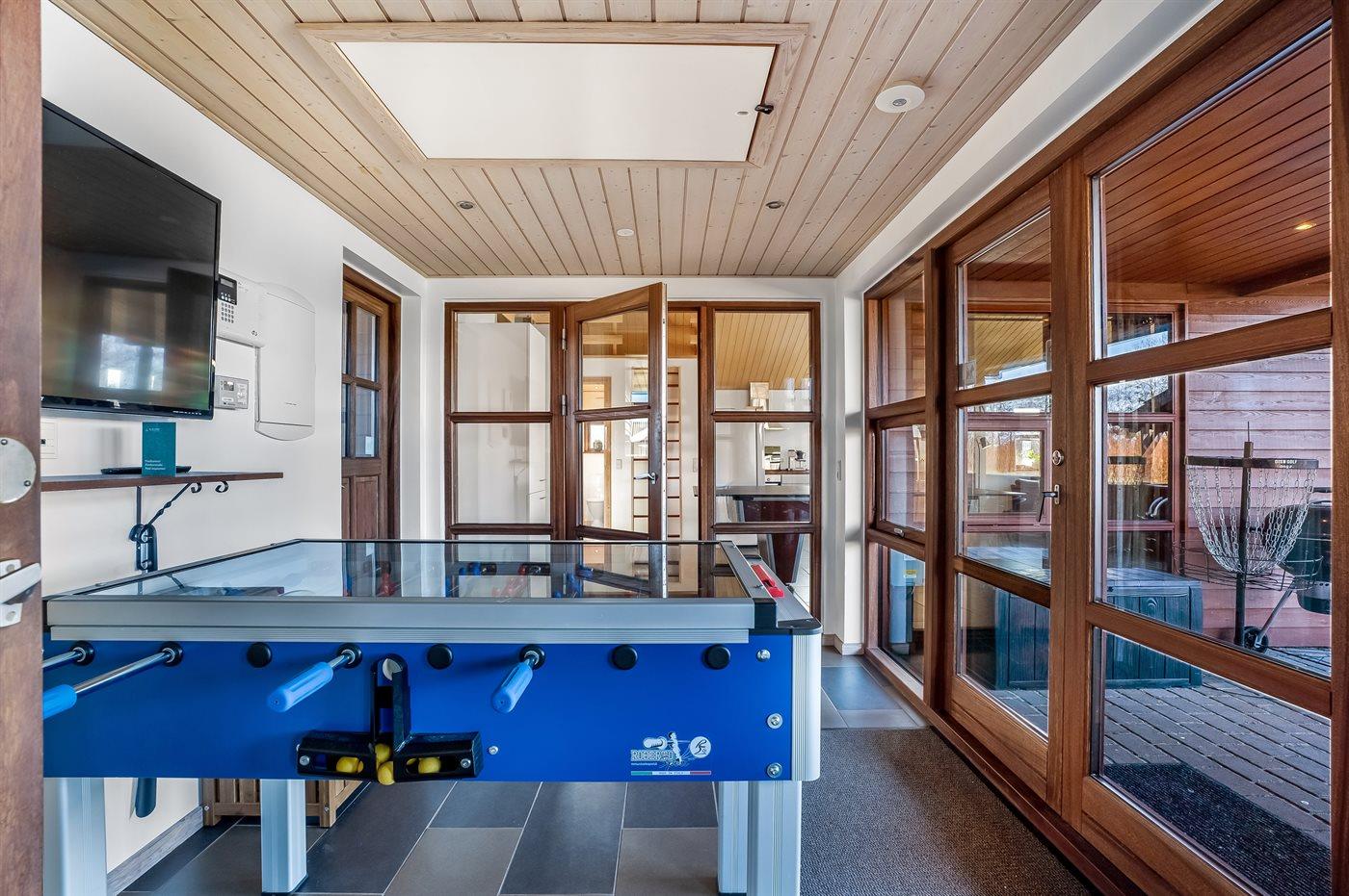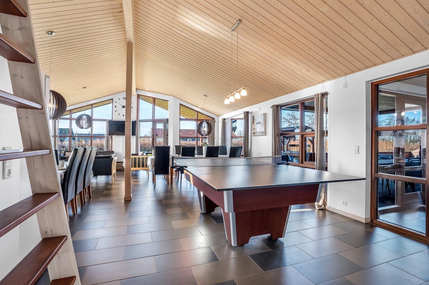 Et dejligt, familievenligt sommerhus med indendørs swimmingpool og spa, samt forskellige indendørs aktiviteter. Sommerhuset har også gode udendørsaktiviteter i form af fodboldmål og minifodboldbane anlagt med kunstgræs.