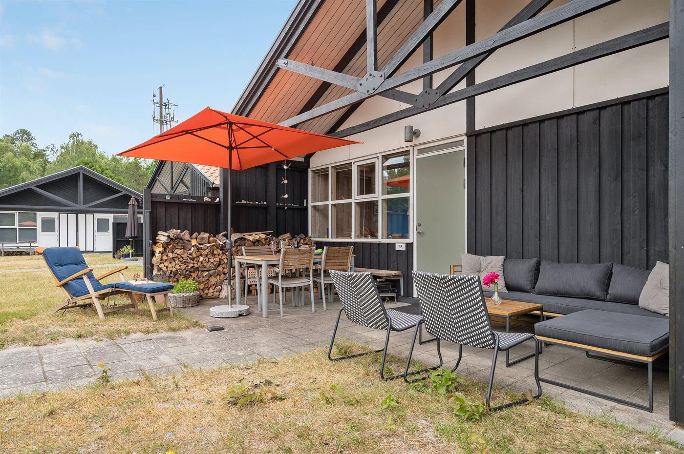 Ferieboligen er beliggende på en 350 m² stor naturgrund. Der er 250 m til havet. Nærmeste forretning er beliggende i en afstand af 100 m. Der er en golfbane i en afstand af 1500 m. Til ferieboligen hører 10 m² terrasseareal. Desuden er der 10 m² overdækket terrasse. Gratis fællesparkering 50-90 m fra huset. Der er redskabsrum.