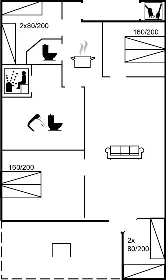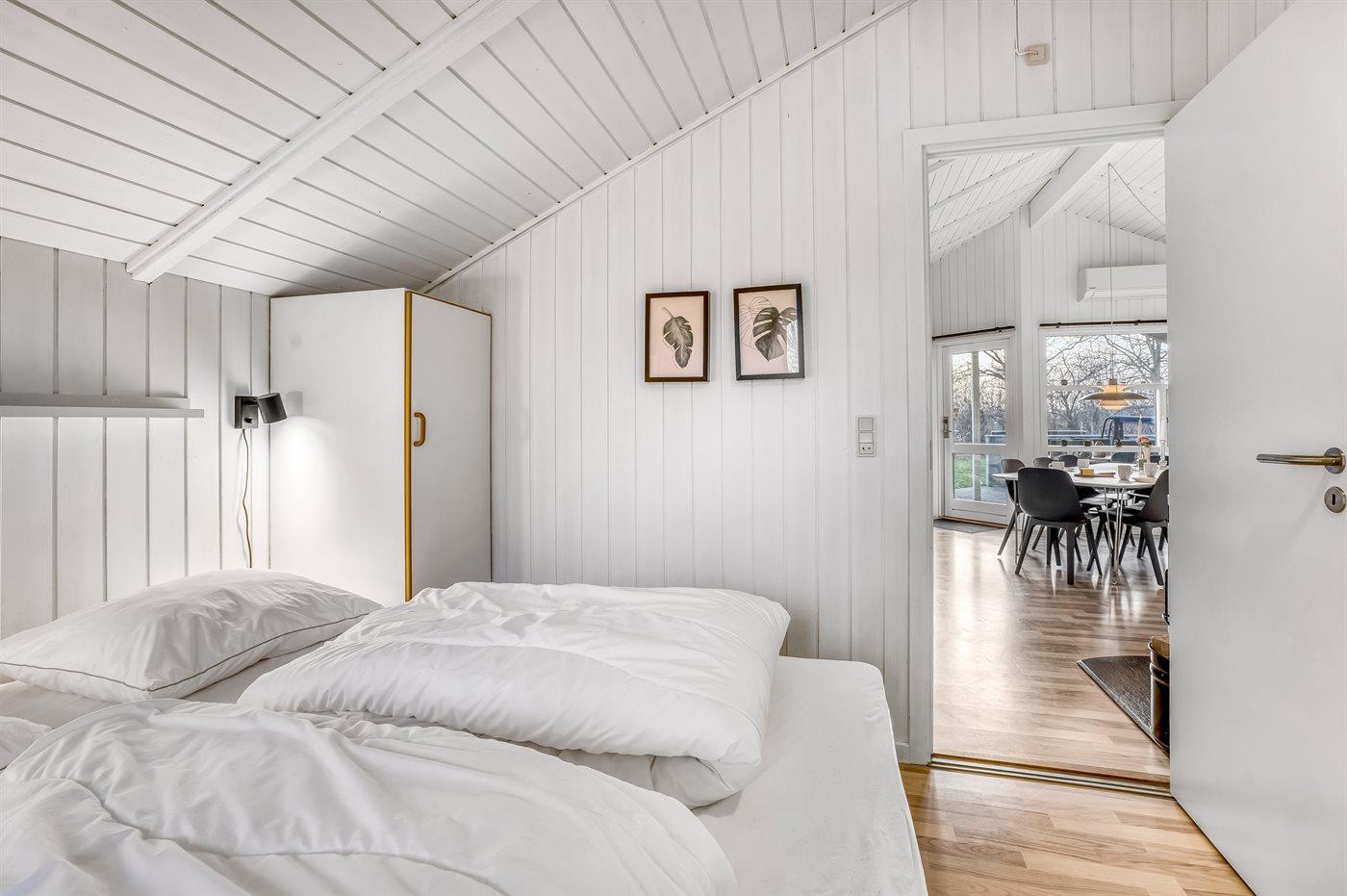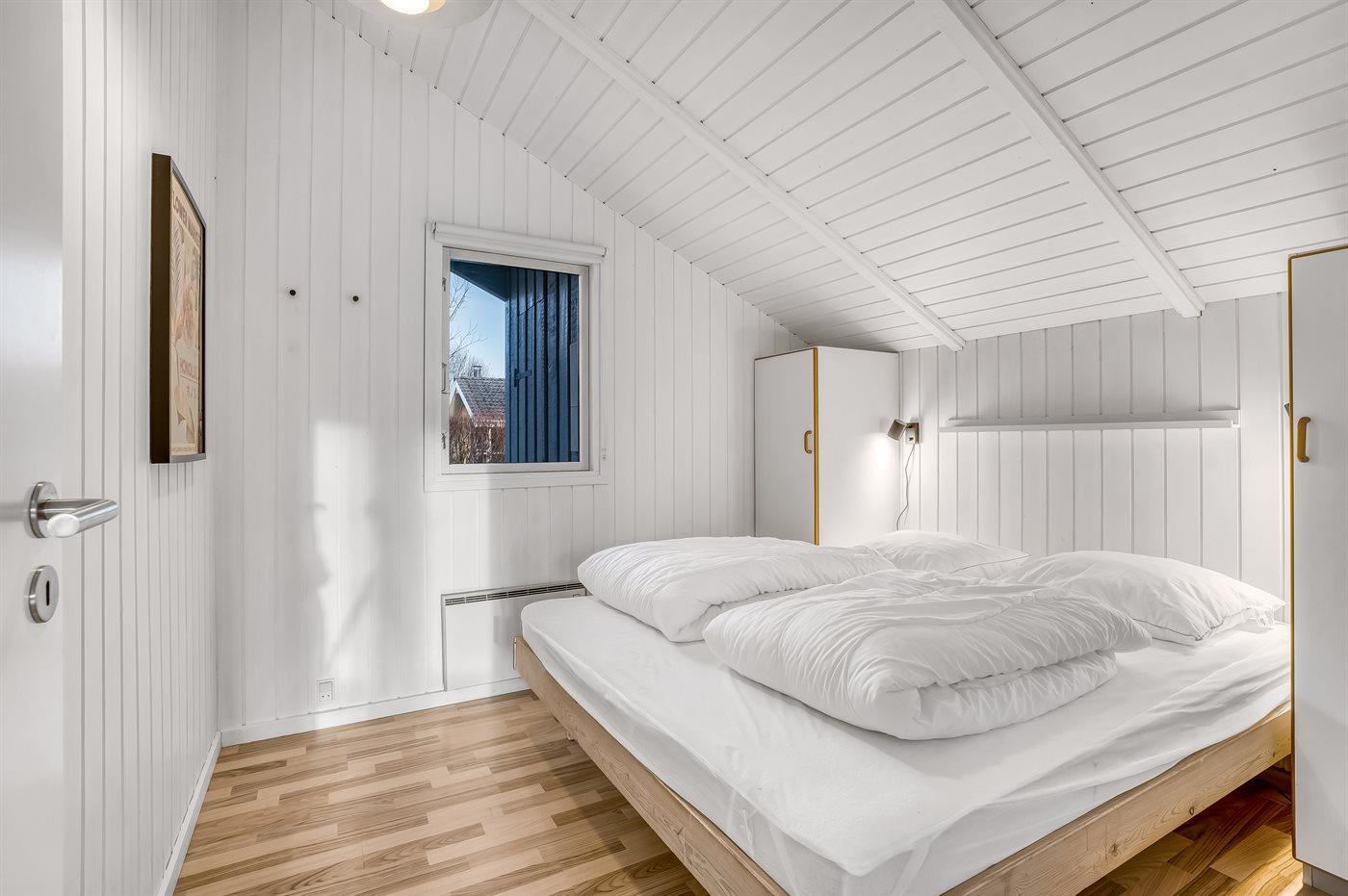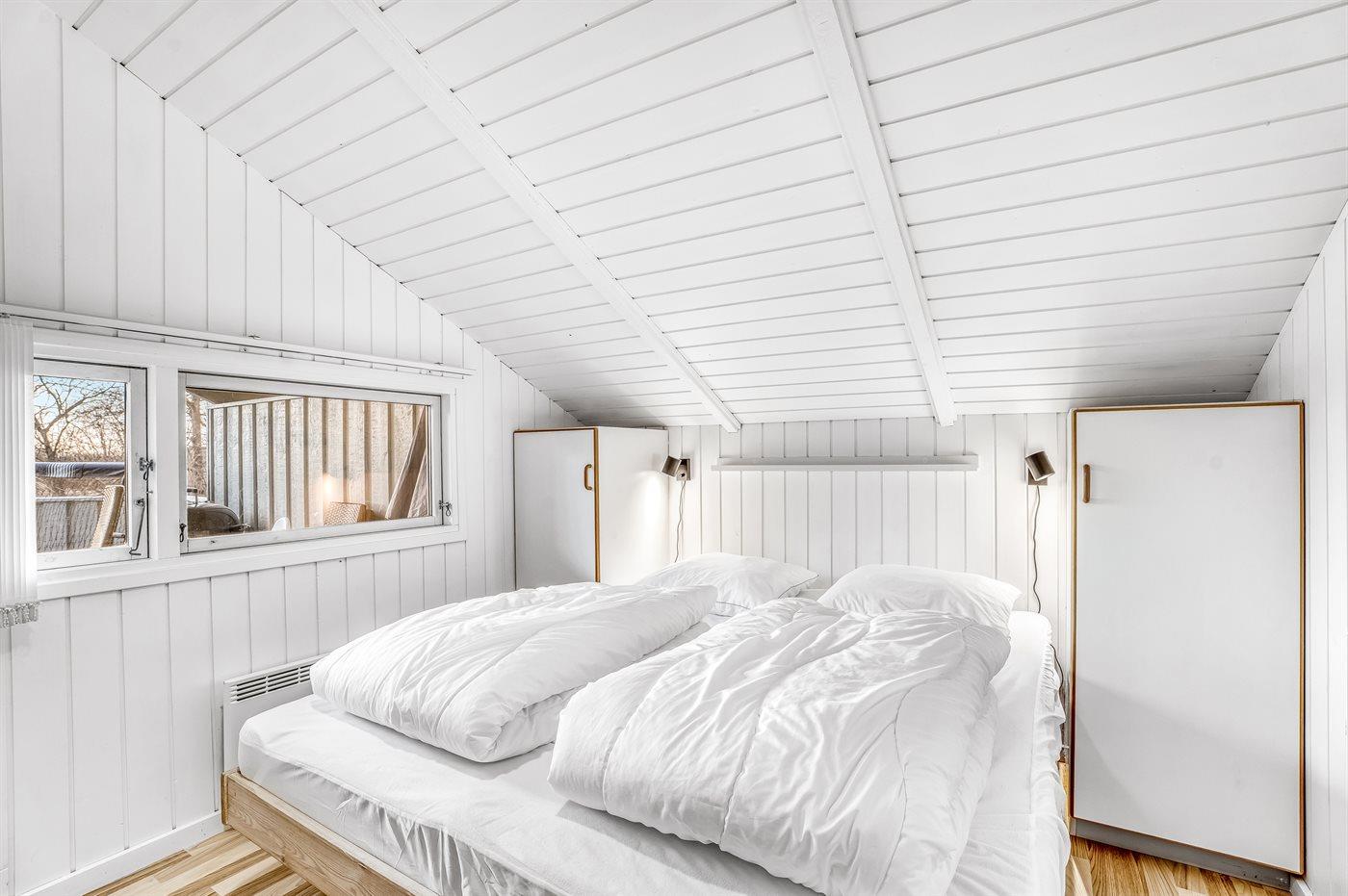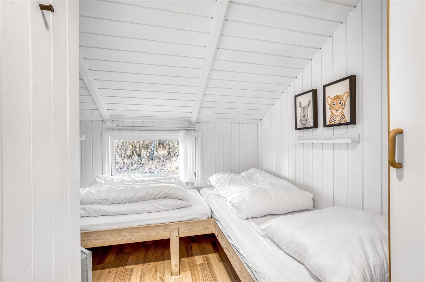 Der er i alt 4 soveværelser. Sovepladserne fordeler sig på: 4 sovepladser i dobbeltsenge. 4 sovepladser i enkeltsenge. Derudover er der 1 stk. barneseng.