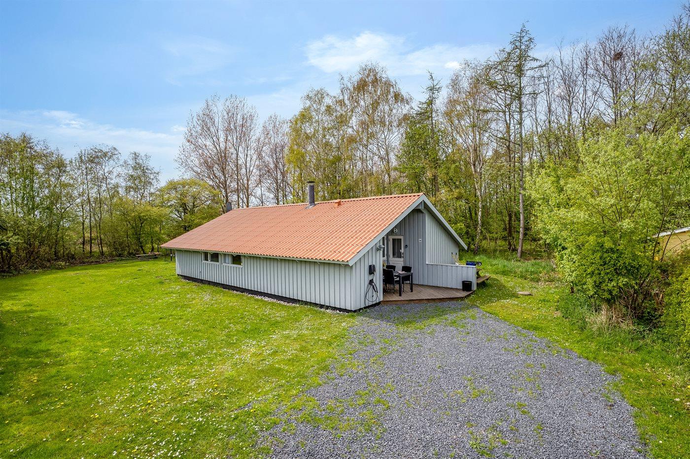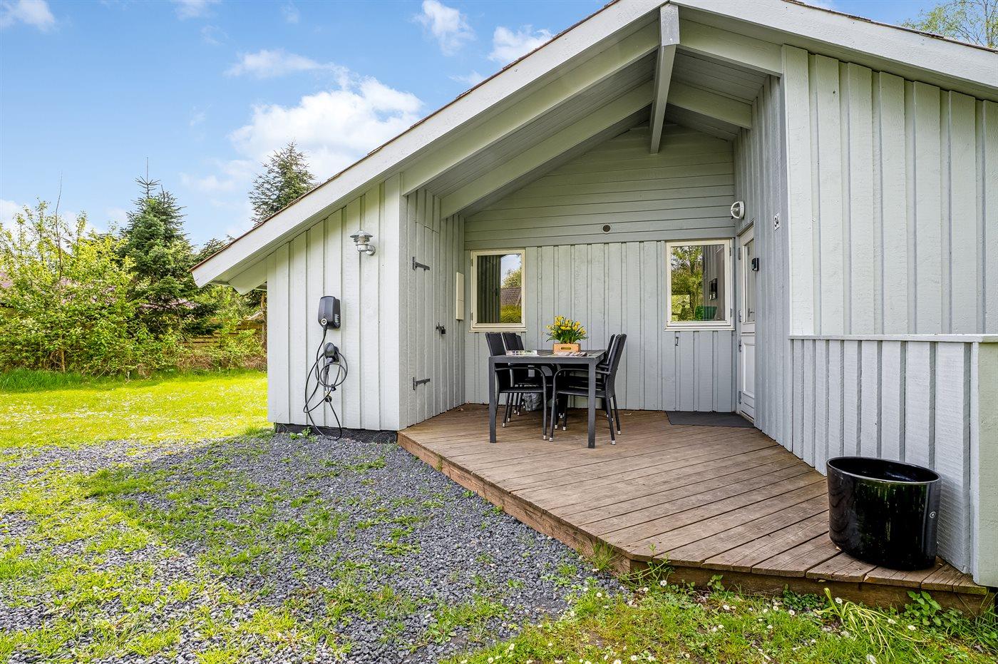 Ferieboligen er beliggende på en 1093 m² stor naturgrund. Der er 1500 m til havet. Nærmeste forretning er beliggende i en afstand af 500 m. Til ferieboligen hører åbent terrasseareal. Desuden er der overdækket terrasse. Sandkasse. Fodboldmål. Der ligger en legeplads i en afstand af 500 m. Grill til rådighed. Der er installeret stik til opladning af elbil. Parkering ved ferieboligen.