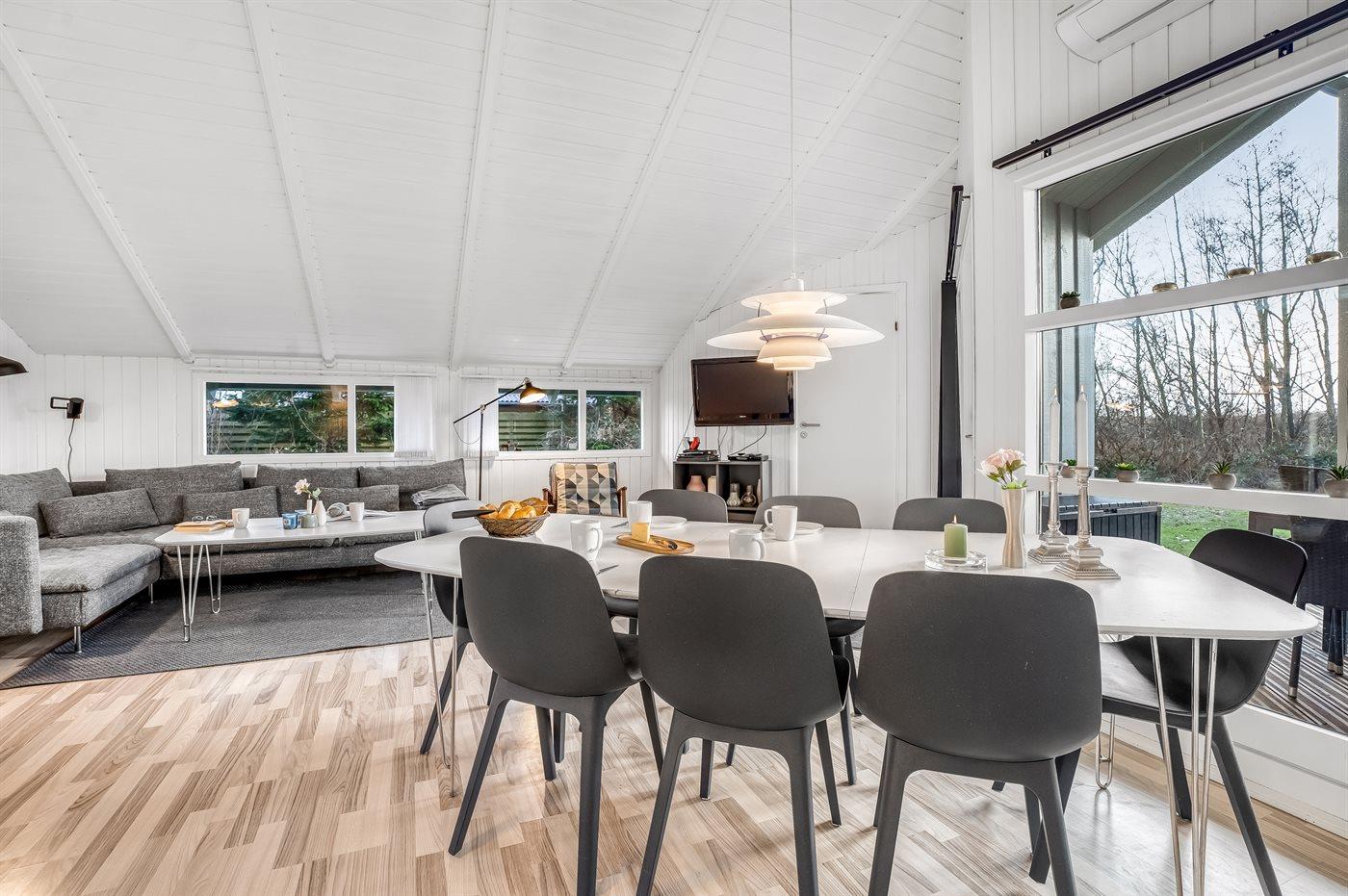Et meget hyggeligt sommerhus til 8 personer med badekar indendørs, sauna samt en vildmarksspa udenfor til 6 personer. Vaskemaskine og opvaskemaskine, barneseng og høj barnestol. Huset er godt indrettet med gode senge til alle. Der er TV med chromecast, der kan streame kanaler via internet på egen tablet eller telefon. Sommerhuset har en dejlig, ugenert have, og det ligger i gåafstand til centrum, den dejlige badestrand, indkøb og restauranter.