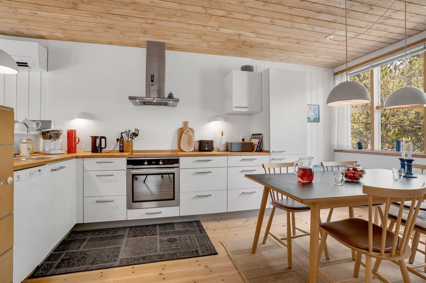 Køkkenet er udstyret med 1 køleskab. Der er 4 induktionskogeplader, varmluftovn, mikrobølgeovn samt opvaskemaskine.