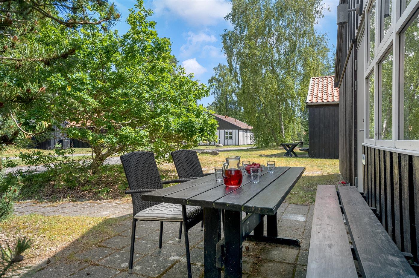Ferieboligen er beliggende på en 150 m² stor naturgrund. Der er 350 m til havet. Nærmeste forretning er beliggende i en afstand af 350 m. Der er en golfbane i en afstand af 1000 m. Til ferieboligen hører 10 m² terrasseareal. Desuden er der 12 m² ugenert og overdækket terrasse. Gratis fællesparkering 50-90 m fra huset. Der ligger en legeplads i en afstand af 50 m.