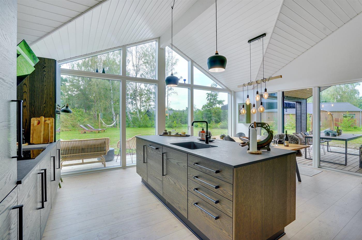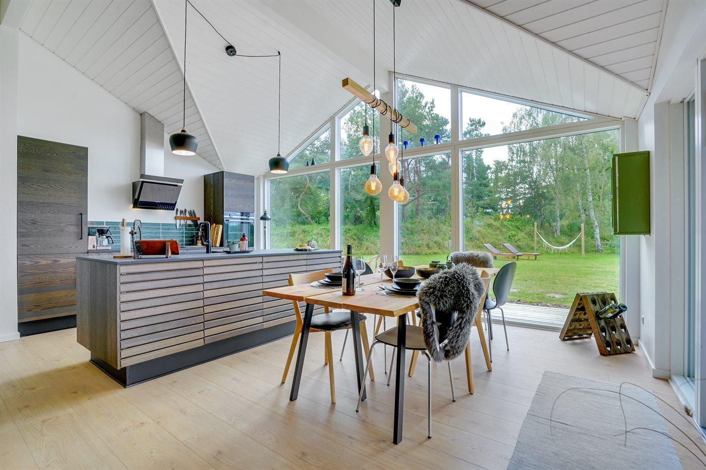 Køkkenet er udstyret med 1 køleskab. Der er 4 induktionskogeplader, varmluftovn samt opvaskemaskine.