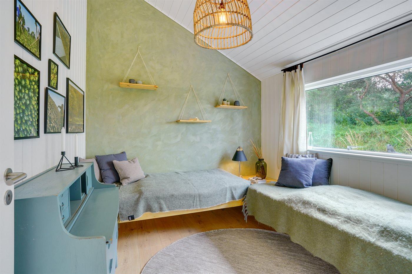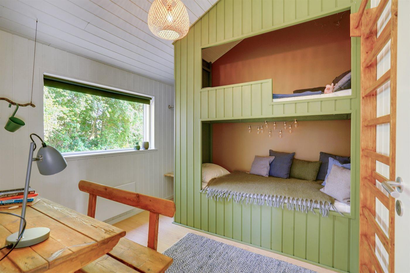 Der er i alt 3 soveværelser. Sovepladserne fordeler sig på: 2 sovepladser i dobbeltseng. 2 sovepladser i enkeltsenge. 2 sovepladser i køjeseng. Derudover er der 1 stk. barneseng.