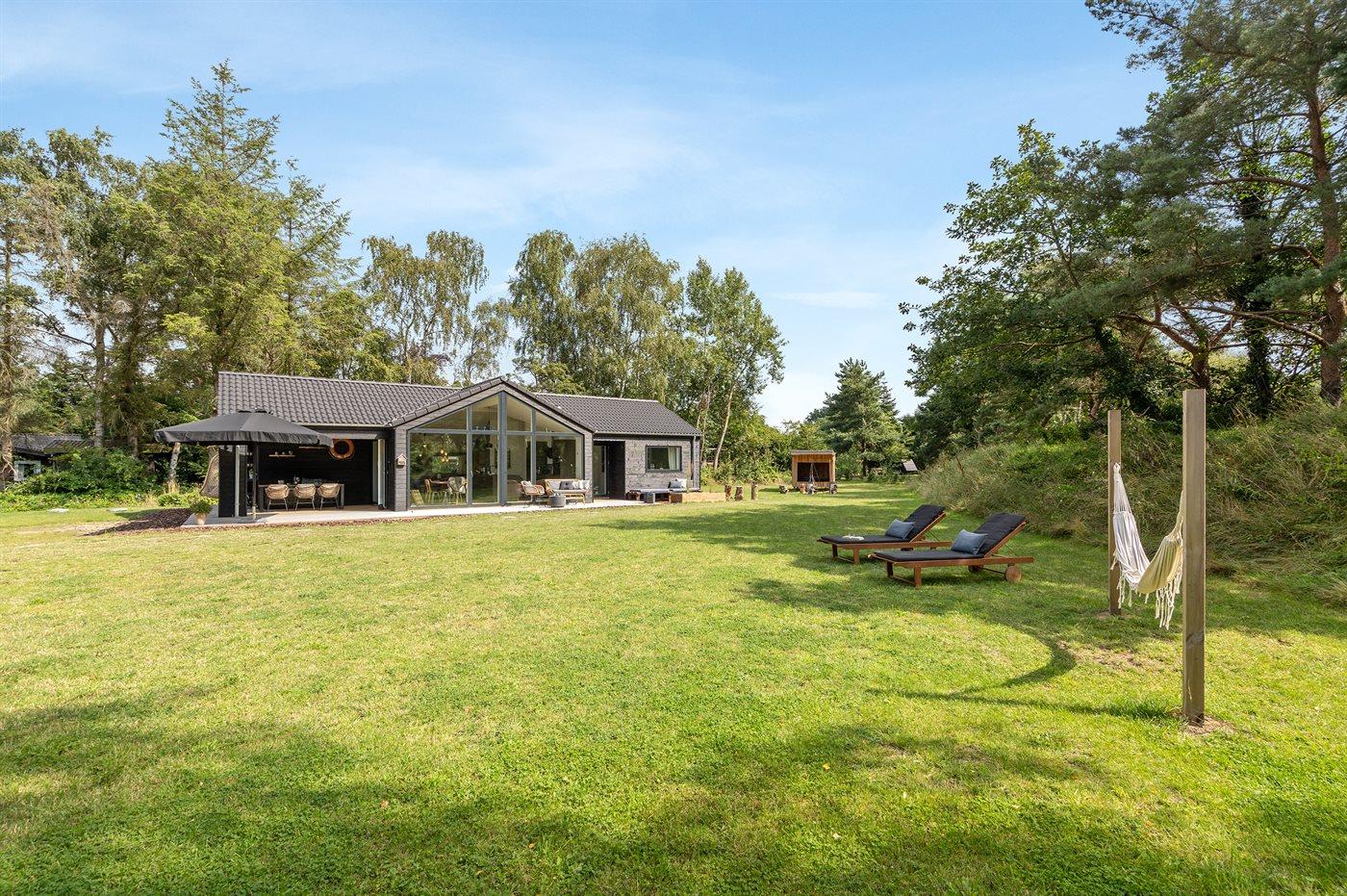 Nyt sommerhus fra 2020 nær børnevenlig strand og golfbane med stor have og moderne faciliteter.