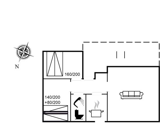 Der er i alt 2 soveværelser. Sovepladserne fordeler sig på: 4 sovepladser i dobbeltsenge.1 soveplads i køjeseng.