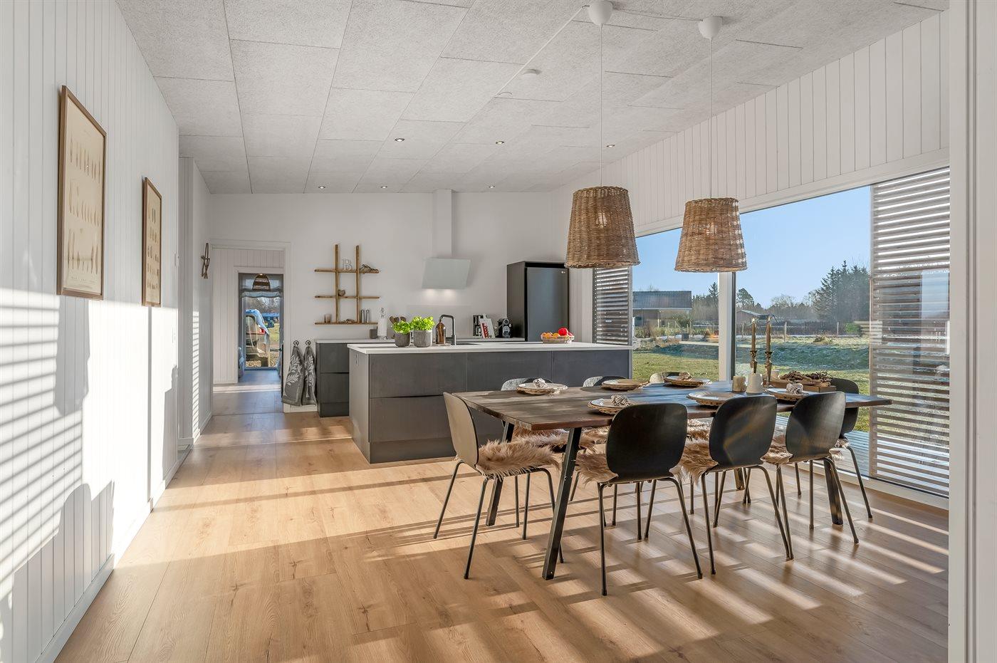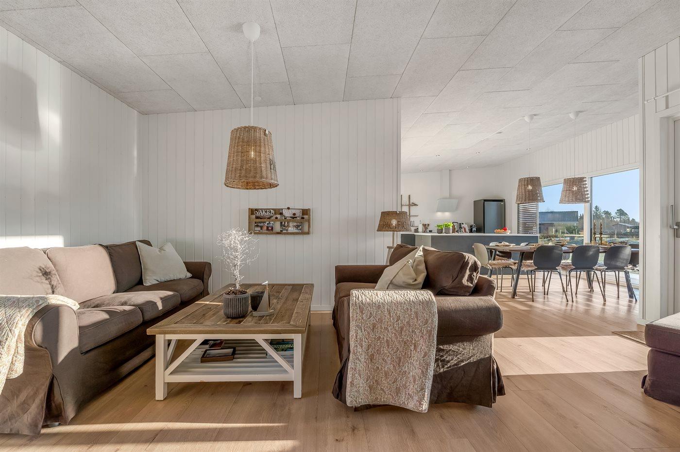 Naturen er lige udenfor, og det afspejler sig på bedste vis i indretningen. Her er der brugt rolige naturfarver og materialer, som skaber en varm, afslappet og hyggelig stemning, hvor I kan læne jer tilbage og nyde roen.