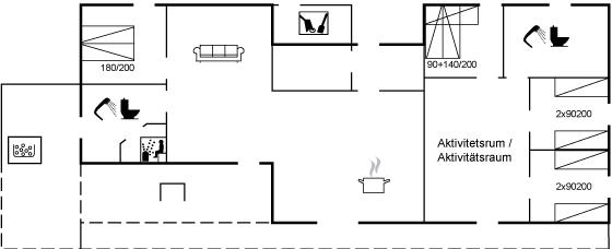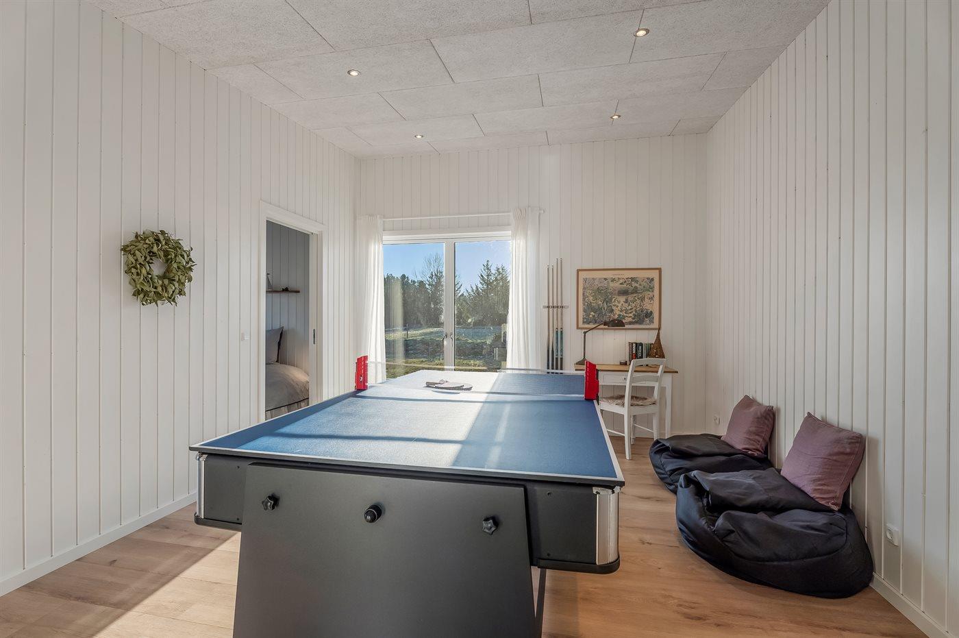 I aktivitetsrummet er der rig mulighed for underholdning for både børn og voksne med billard, bordtennis og airhockey. Her findes også en mindre skrivebordsplads. Hele huset har behagelig gulvvarme.