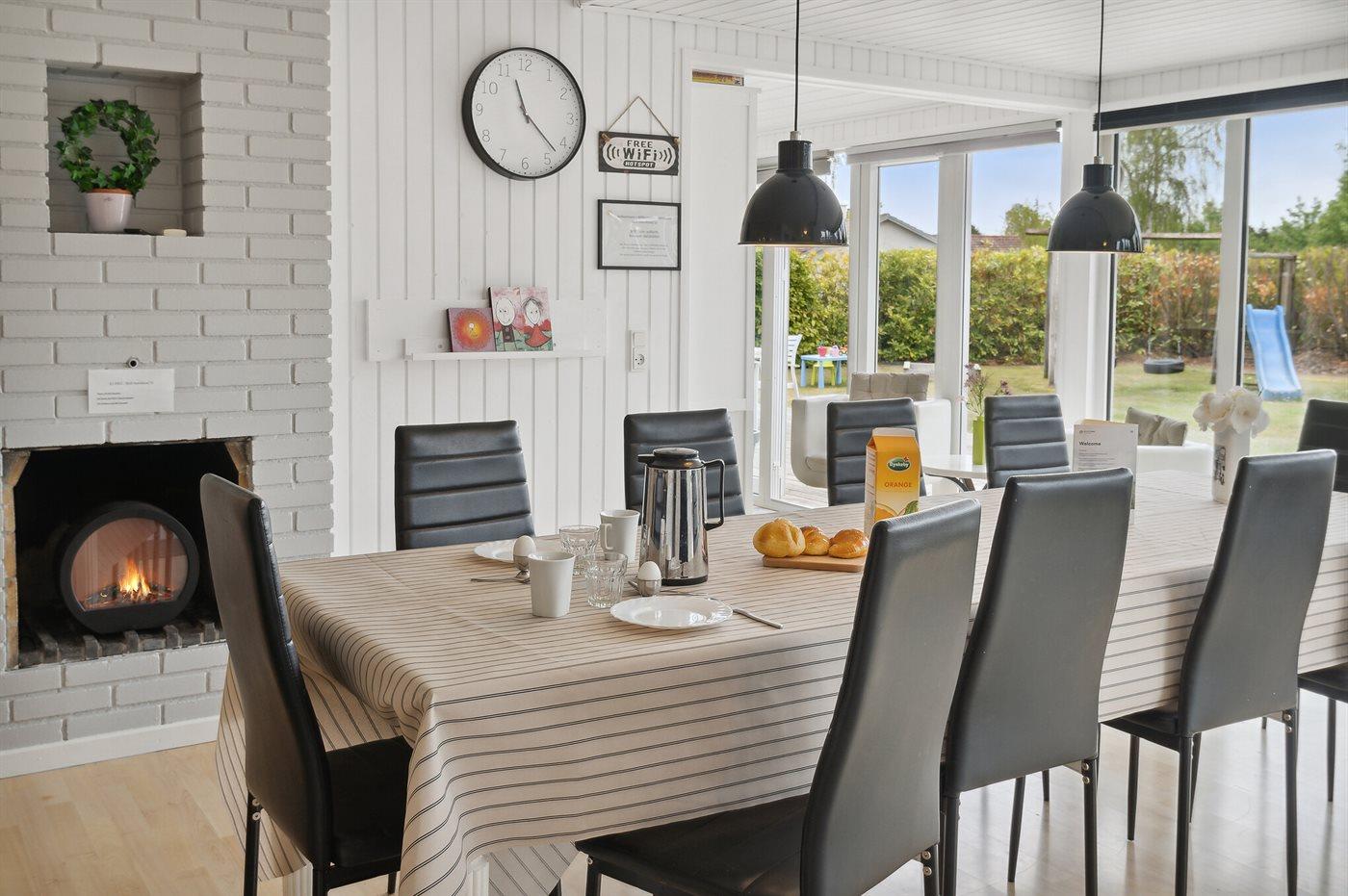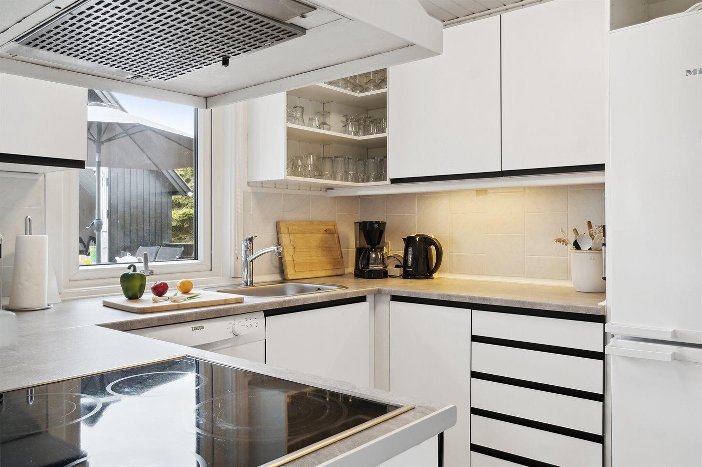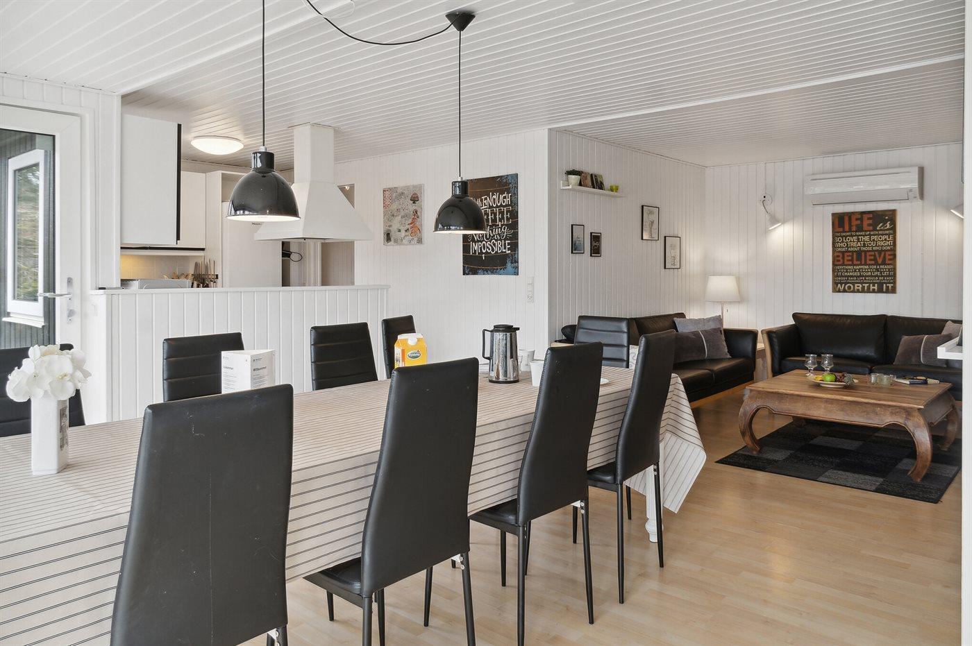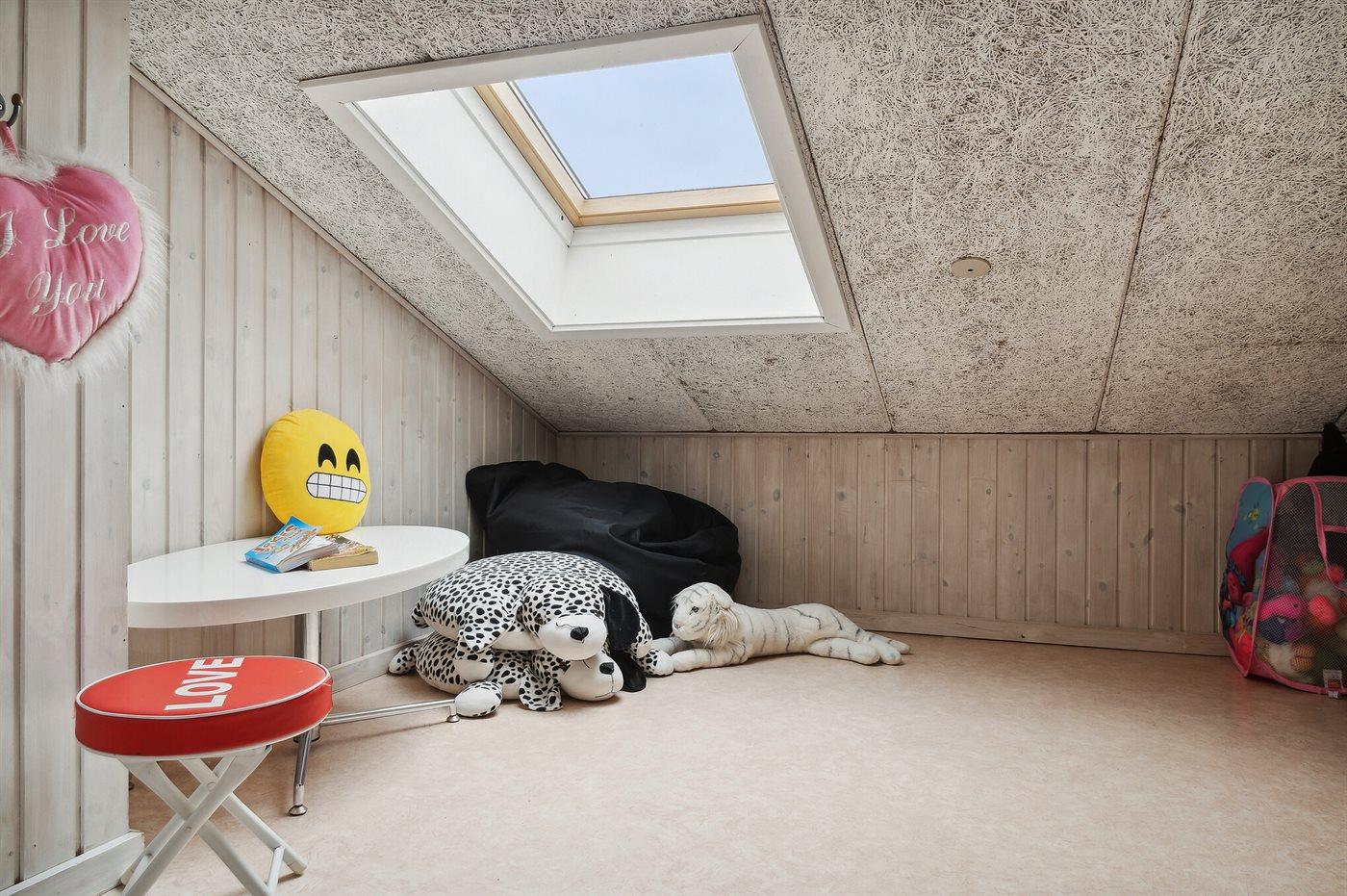 Den hyggelige indretning byder på åbent køkken i forbindelse med spiseafdeling. Sofahjørne med smart-TV og masser af kanaler via fibernettet samt muligheden for at streame dine egne TV-tjenester. Herudover findes en hyggelig krog med brætspil og bøger. Endvidere nyt musikanlæg (2025). Stuen har store panoramavinduer, der giver et godt lysindfald og frit udsyn til haven. Endvidere er der en hyggelig hems, hvor de lidt større børn og teenagere kan trække sig tilbage og fortælle hemmelige røverhistorier eller nyde en tiltrængt pause med egen IPad efter en dejlig dag ved stranden.