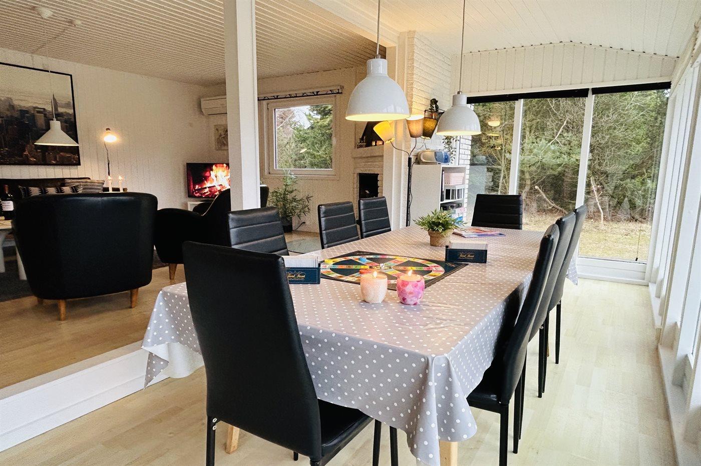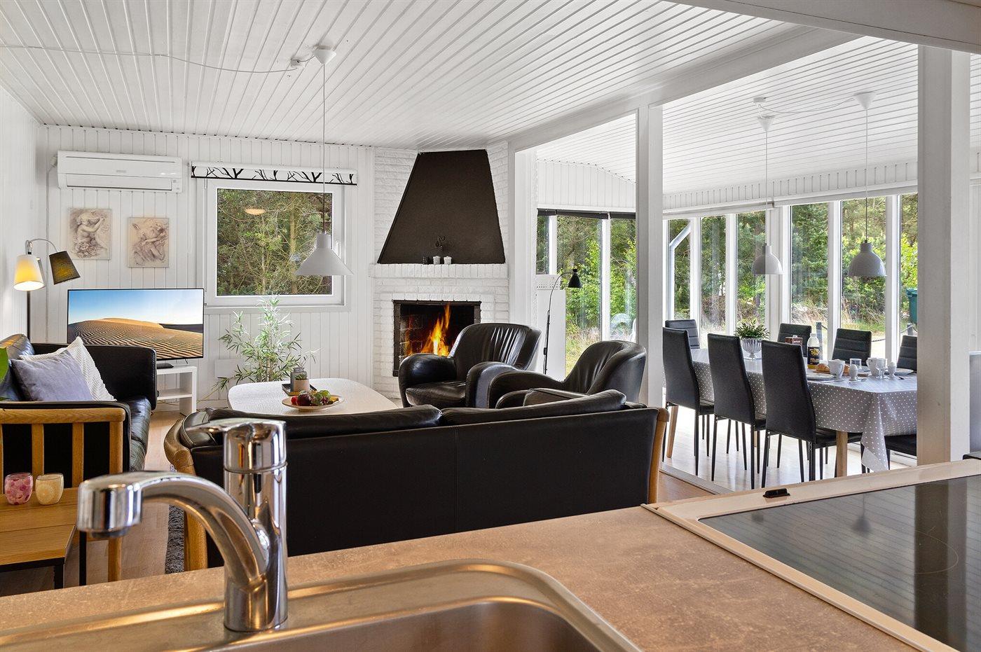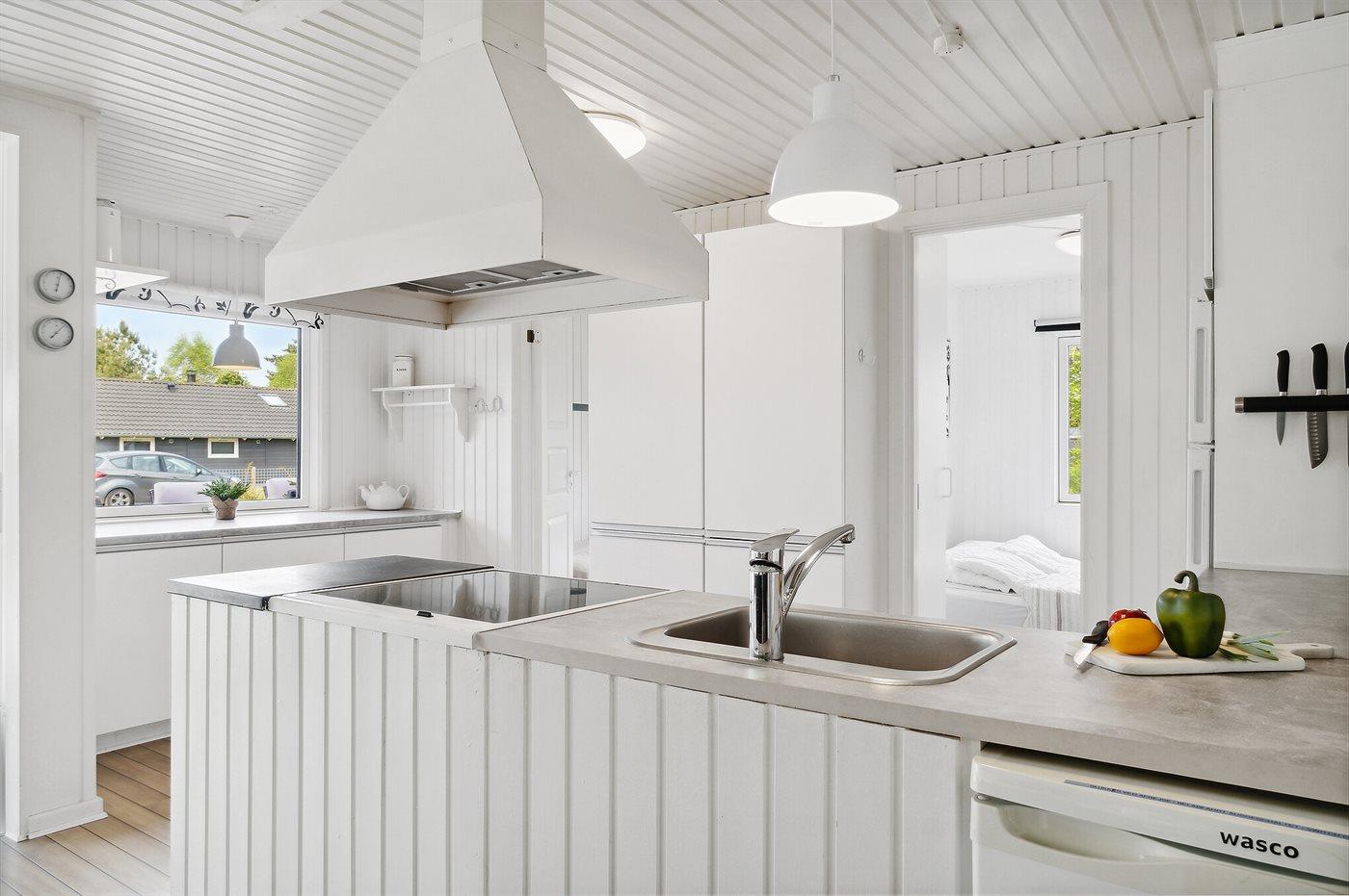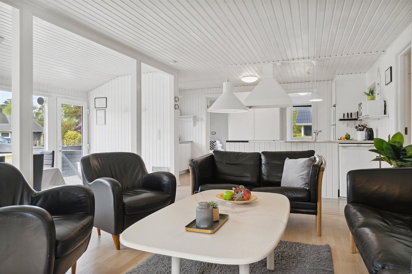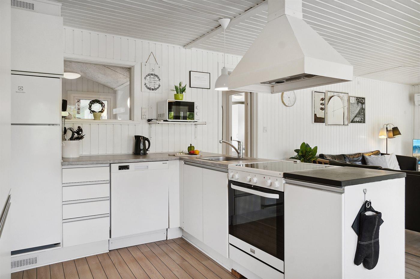 Huset er indenfor holdt i lyse farver og rummer alt der skal til, for at I kan skabe stemningen om en hyggelig familieferie i rolige omgivelser.