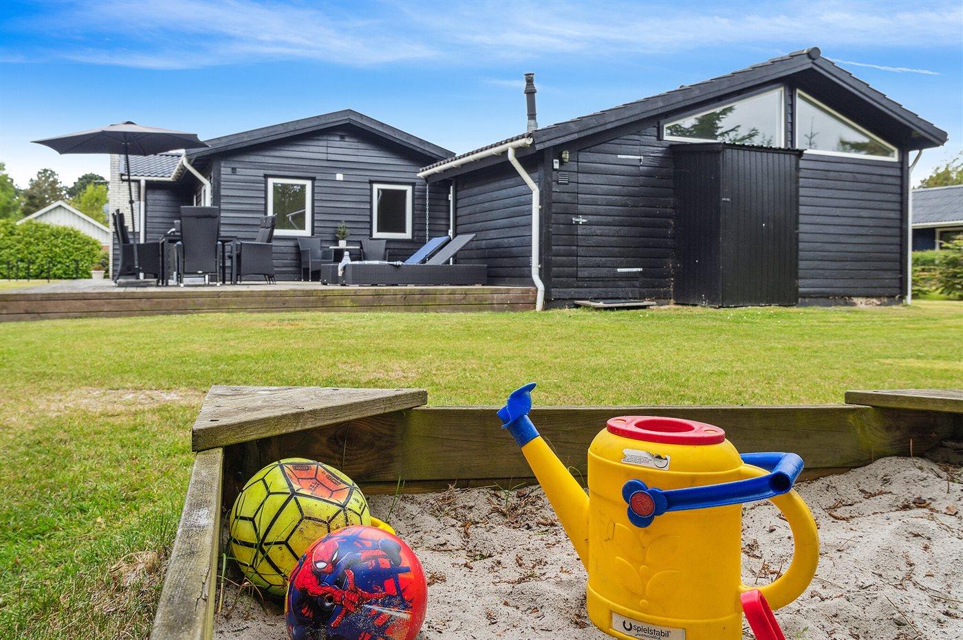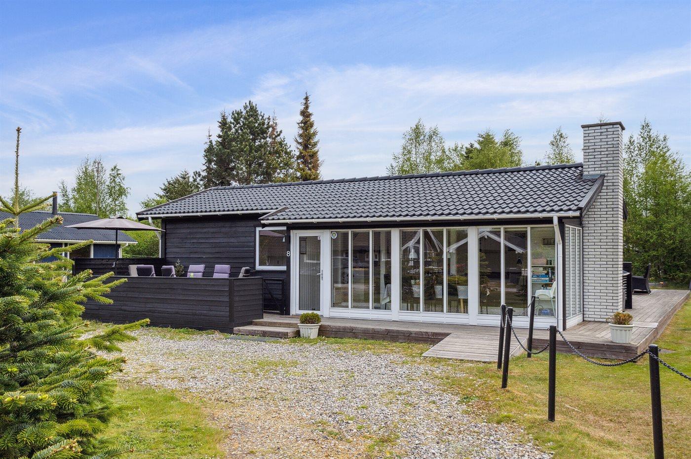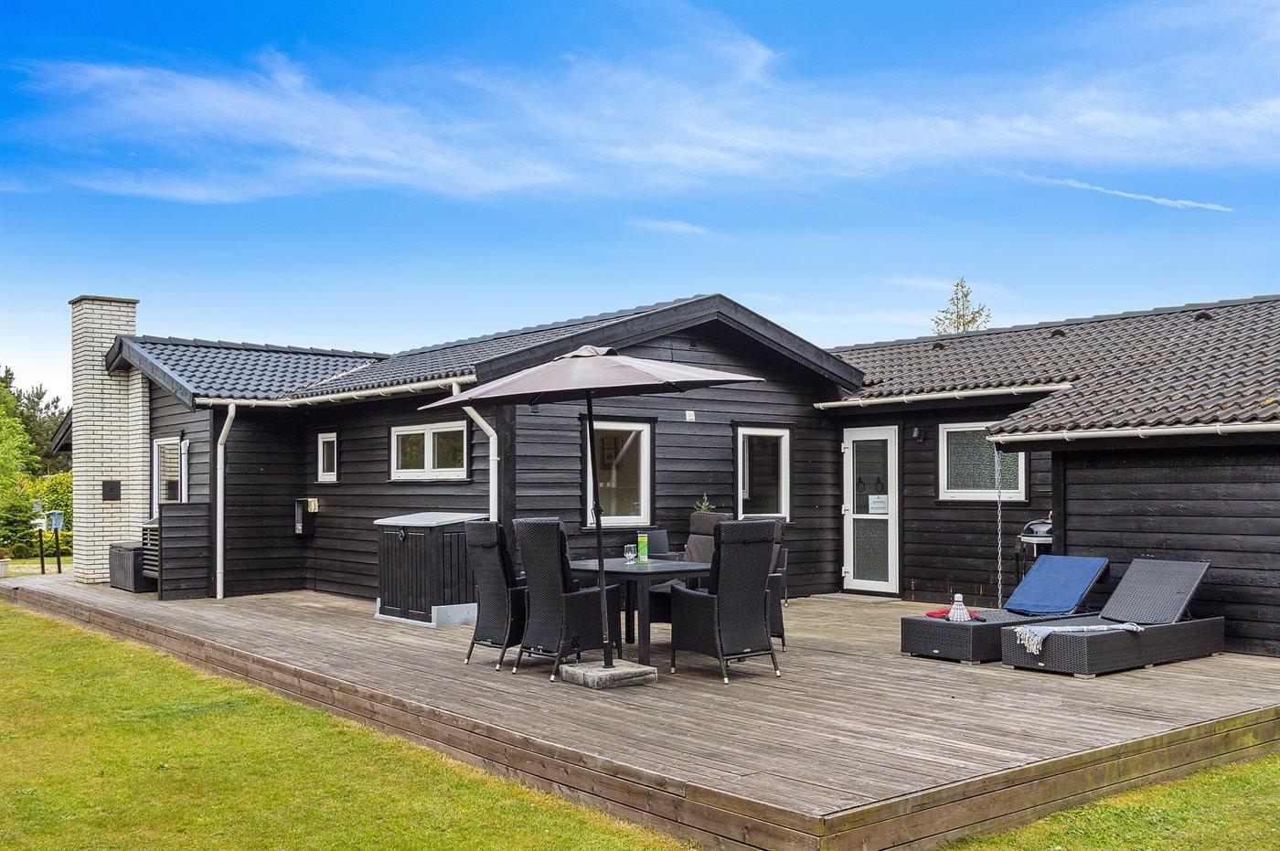 Dette skønne sommerhus med sortmalet træbeklædning og hvide vinduer, emmer af naturlig sommerhusstemning. Et hus der har mange stamgæster, som vender tilbage år efter år.