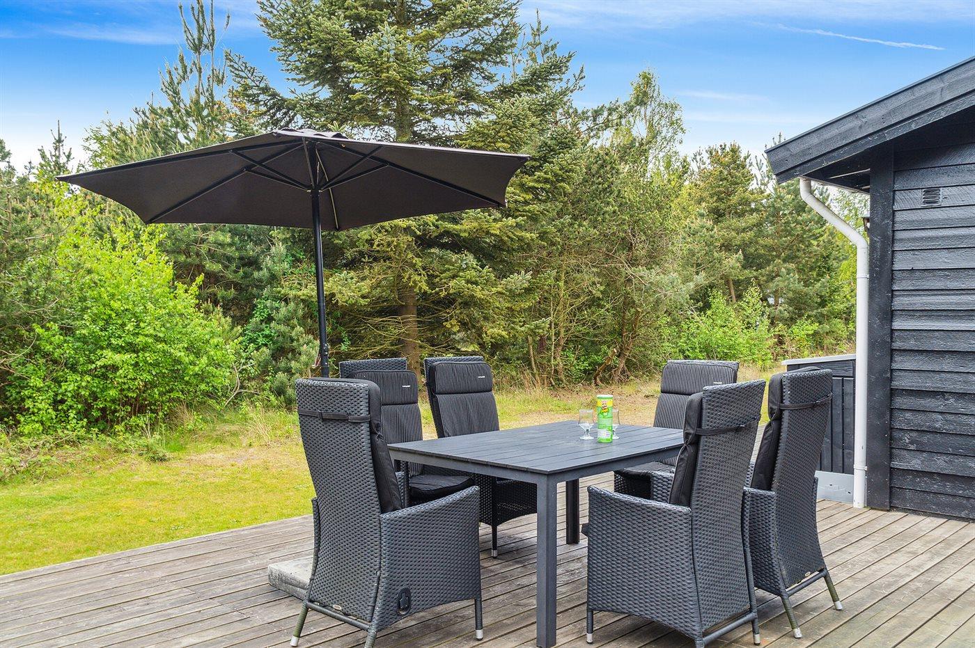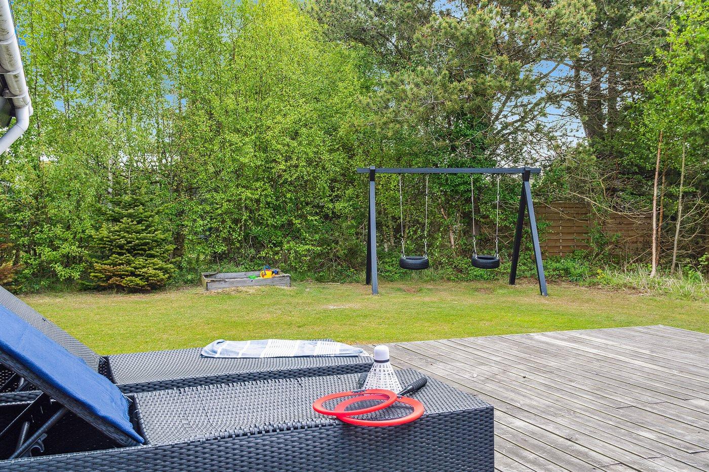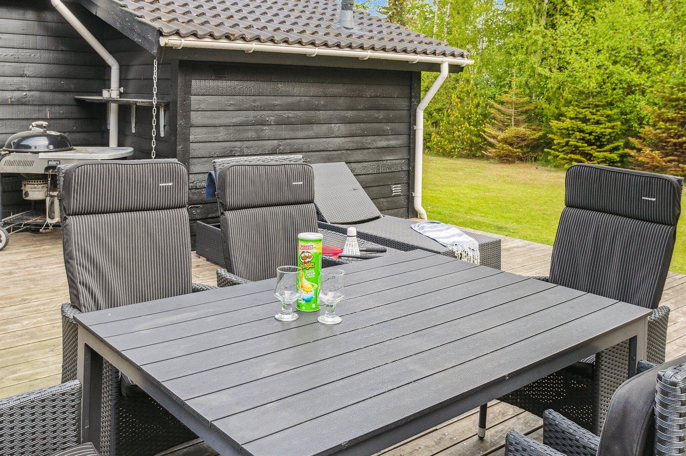 Udenfor venter den dejlige træterrasse, som I kan gå barfodet direkte ud på. Foran huset har terrassen et mindre aflukket område, der kan lukkes af med en låge. Og på husets bagside ud mod baghaven, venter det dejlige terrasseområde med gode havemøbler. Her kan I trække jer tilbage med en god bog og et glas vin, mens der tændes op i grillen.
