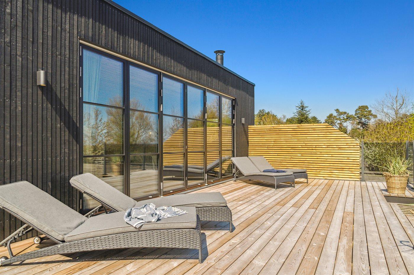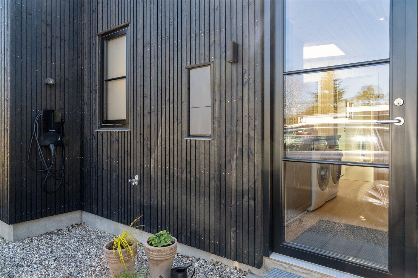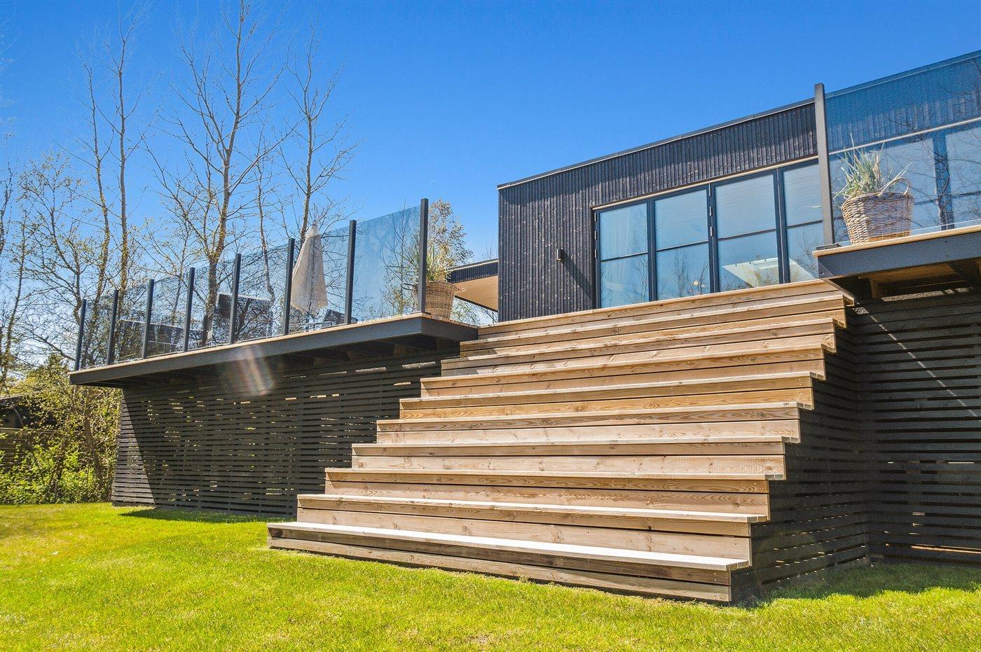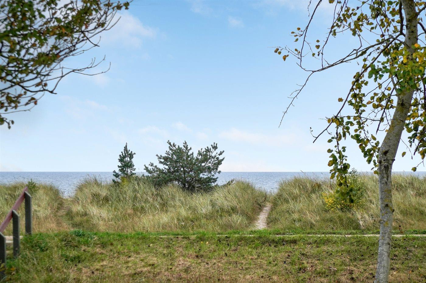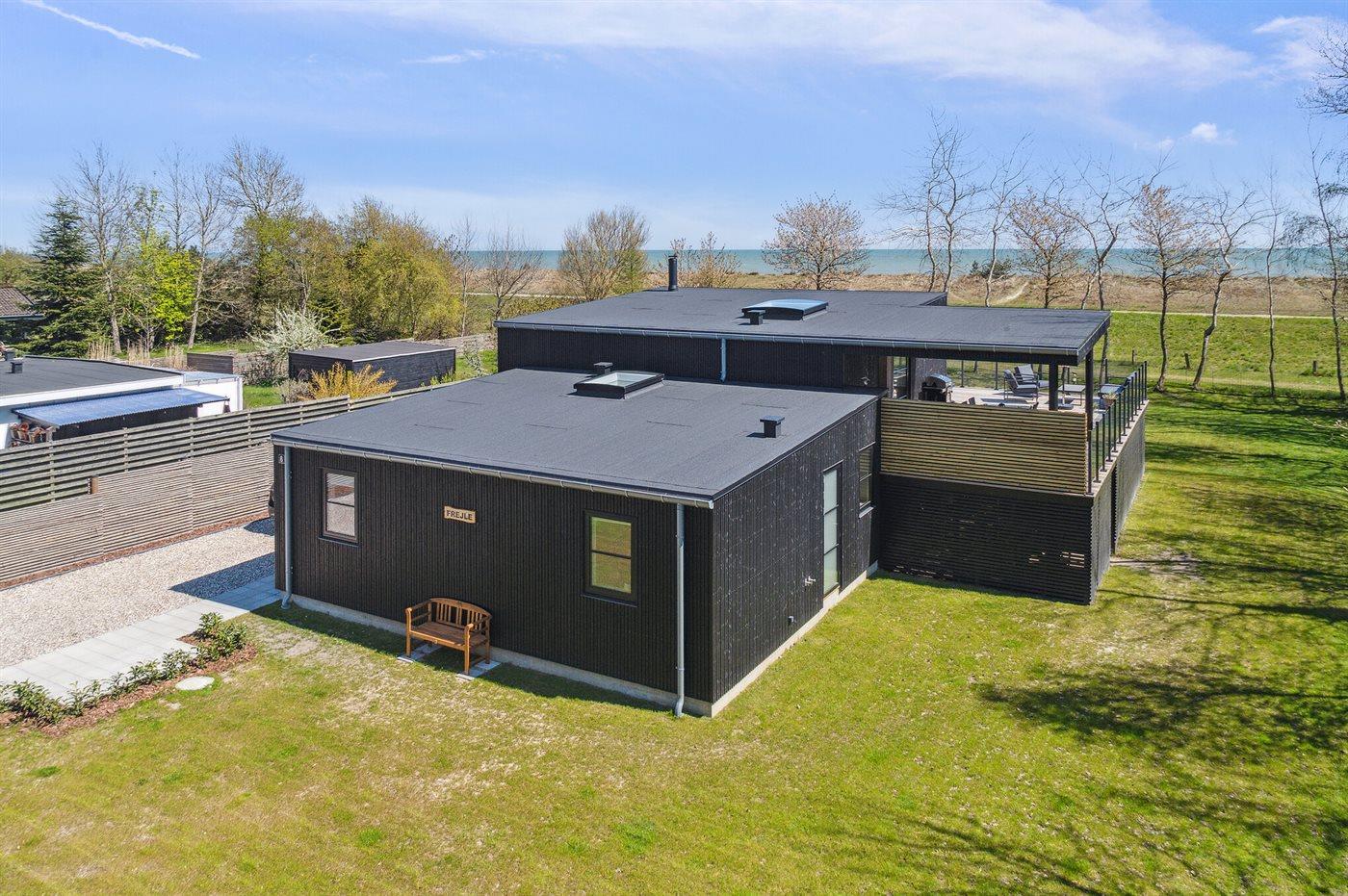 Ferieboligen er beliggende på en 1050 m² stor naturgrund. Der er 90 m til havet. Nærmeste forretning er beliggende i en afstand af 900 m. Til ferieboligen hører 70 m² terrasseareal. Desuden er der 20 m² overdækket terrasse. Udgang til altan. Grill til rådighed. Der er installeret stik til opladning af elbil. Type 2 stik. Parkering ved ferieboligen.