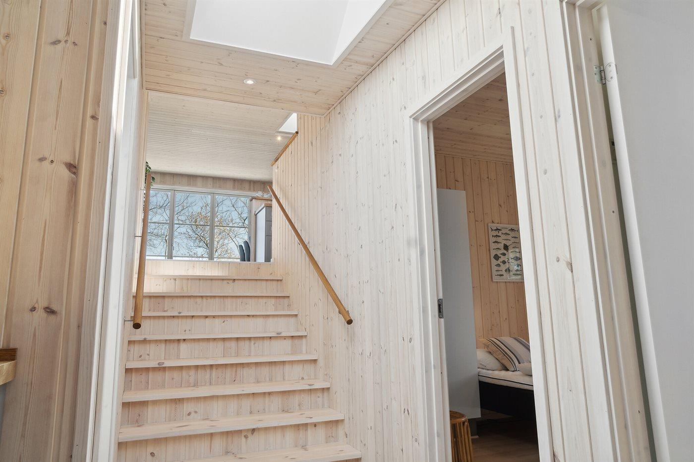 Huset er bygget i 1 ½ plan, som giver en spændende indretning. Et hus som på alle måder indbyder til samvær og afslapning.