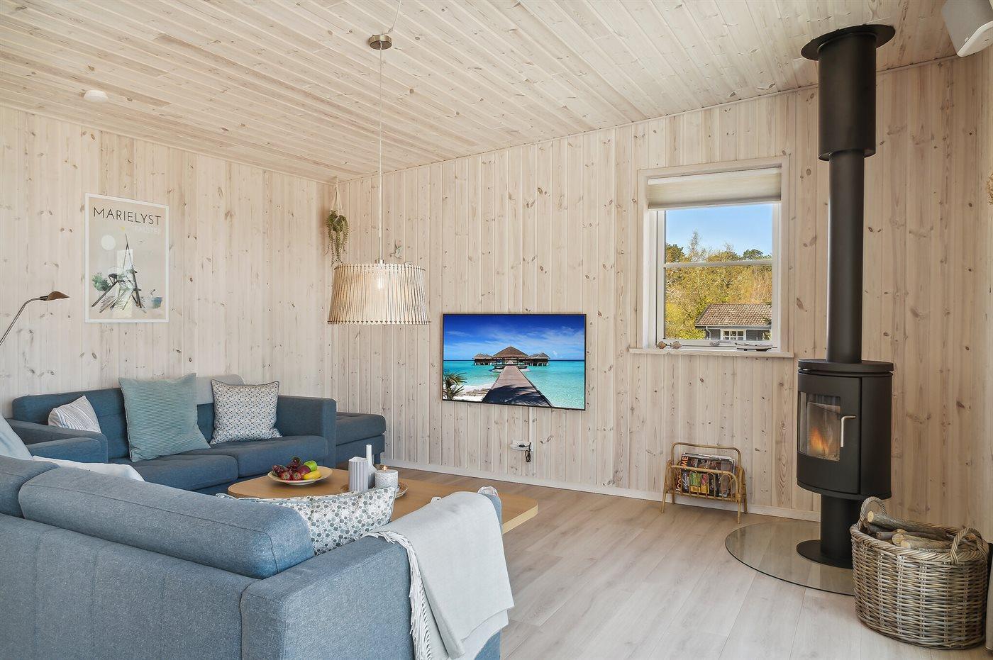 Sommerhuset egner sig til 8 personer. Ferieboligen er på 123 m², er i 1 ½ plan, og er bygget i 2022. Det er ikke tilladt at medbringe husdyr. Ferieboligen er udstyret med 1 energivenlig luft til vand varmepumpe. Hele ferieboligen har gulvvarme. Ferieboligen har vaskemaskine. Tørretumbler. Frysekapacitet på 61 liter. Der er desuden brændeovn. Til de små er der 1 stk. barnestol.
