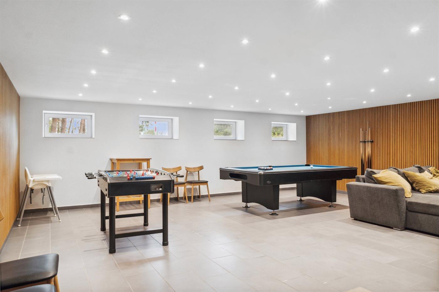 Huset byder på masser af aktivitetsmuligheder og plads til hyggeligt samvær. I et hus som dette, bliver det aldrig et problem at finde på noget at lave og der er masser af muligheder til selvforkælelse. Der findes swimmingpool, spa, sauna, aktivitetsrum og store terrasser for bare at nævne nogle af husets fordele. Gå på opdagelse i billederne.