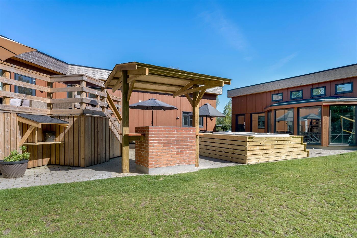 Bemærk: Der findes gratis brænde til brændeovn og bålsted. Standvandsspaen i poolrummet og den udendørs standvandsspa har vandforsyning direkte fra poolen, hvilket sikrer hurtig opvarmning.
