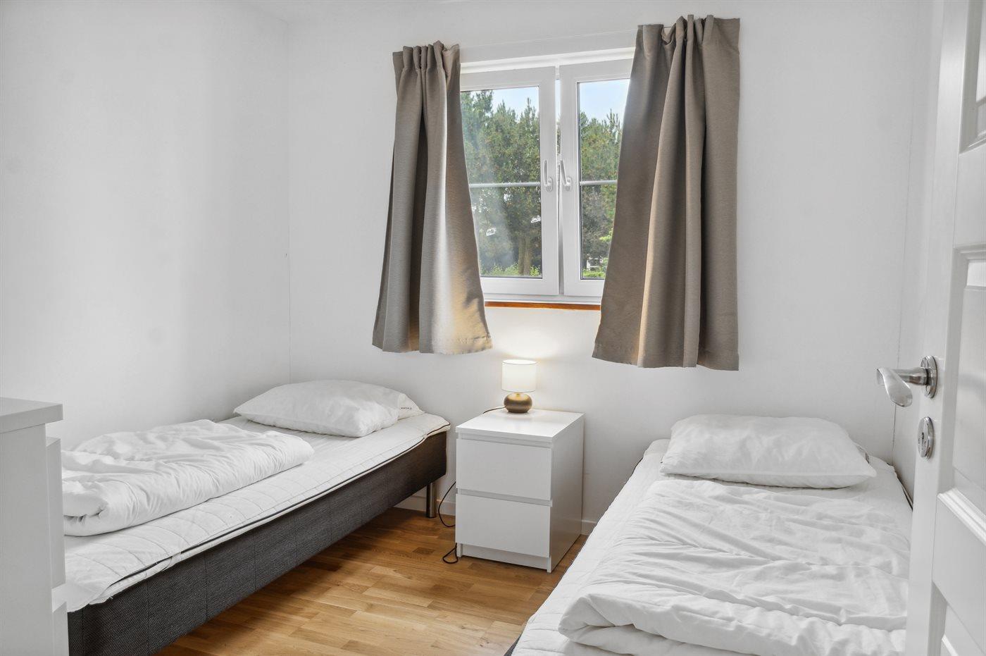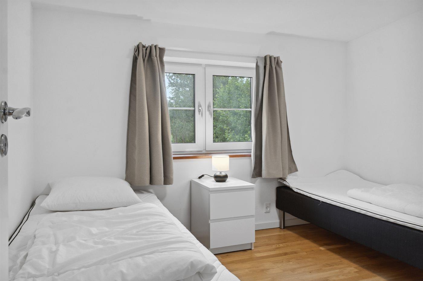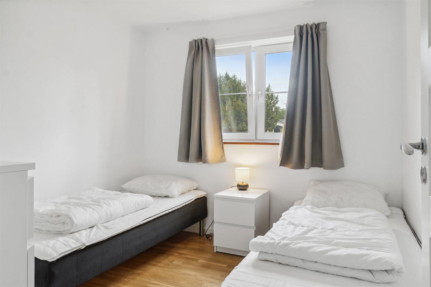 Der er i alt 7 soveværelser. Sovepladserne fordeler sig på: 6 sovepladser i dobbeltsenge. 6 sovepladser i enkeltsenge. 4 sovepladser i køjesenge. 2 sovepladser på madrasser. 2 af disse sovepladser befinder sig på en hems i forbindelse med det ene soveværelse. Derudover er der 2 stk. barnesenge.