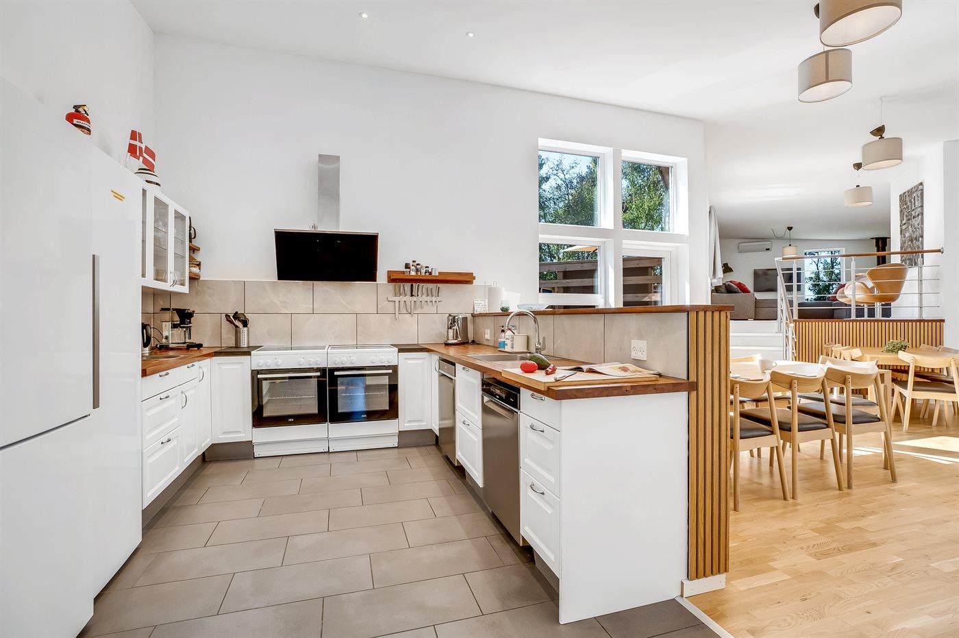 Køkkenet er udstyret med 2 køleskabe. Der er 8 keramiske kogeplader, 2 varmluftovne, mikrobølgeovn samt 2 opvaskemaskiner.