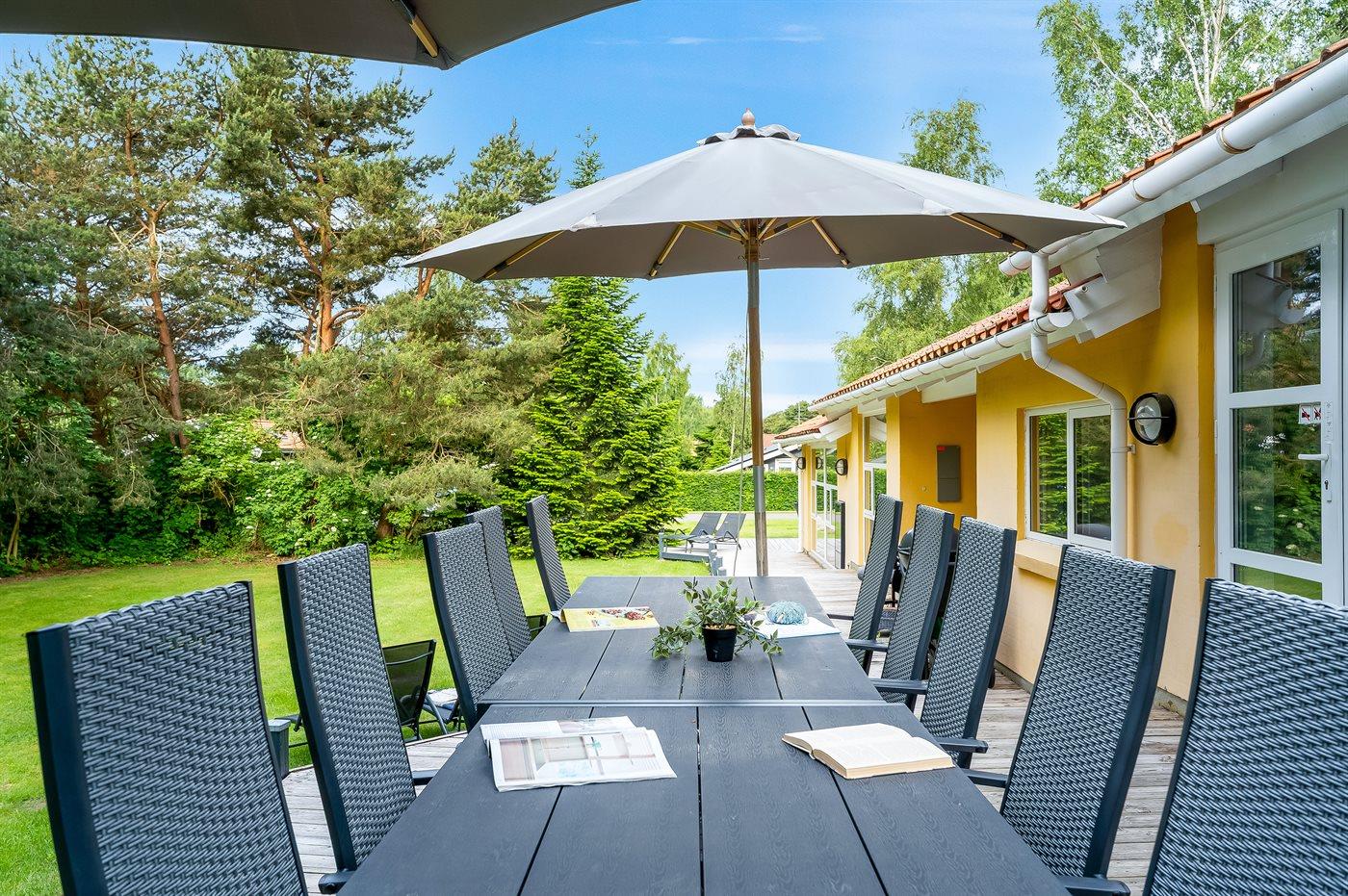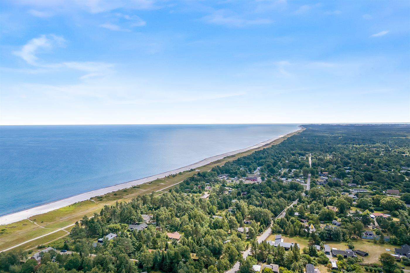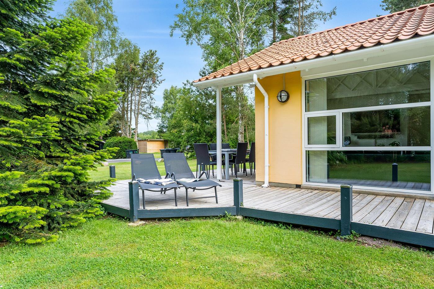 Ferieboligen er beliggende på en 1267 m² stor naturgrund. Der er 600 m til havet. Nærmeste forretning er beliggende i en afstand af 400 m. Der er en golfbane i en afstand af 2000 m. Til ferieboligen hører åbent terrasseareal. Desuden er der overdækket terrasse. Der er redskabsrum. Gynge. Sandkasse. Trampolin. Der findes desuden indendørs og udendørs spil samt trækvogn. Der ligger en legeplads i en afstand af 350 m. Grill til rådighed. Parkering ved ferieboligen.