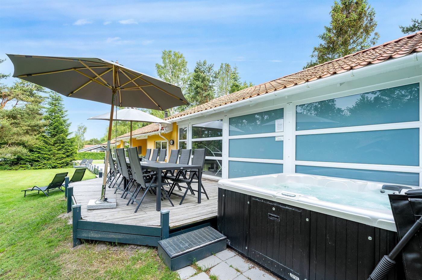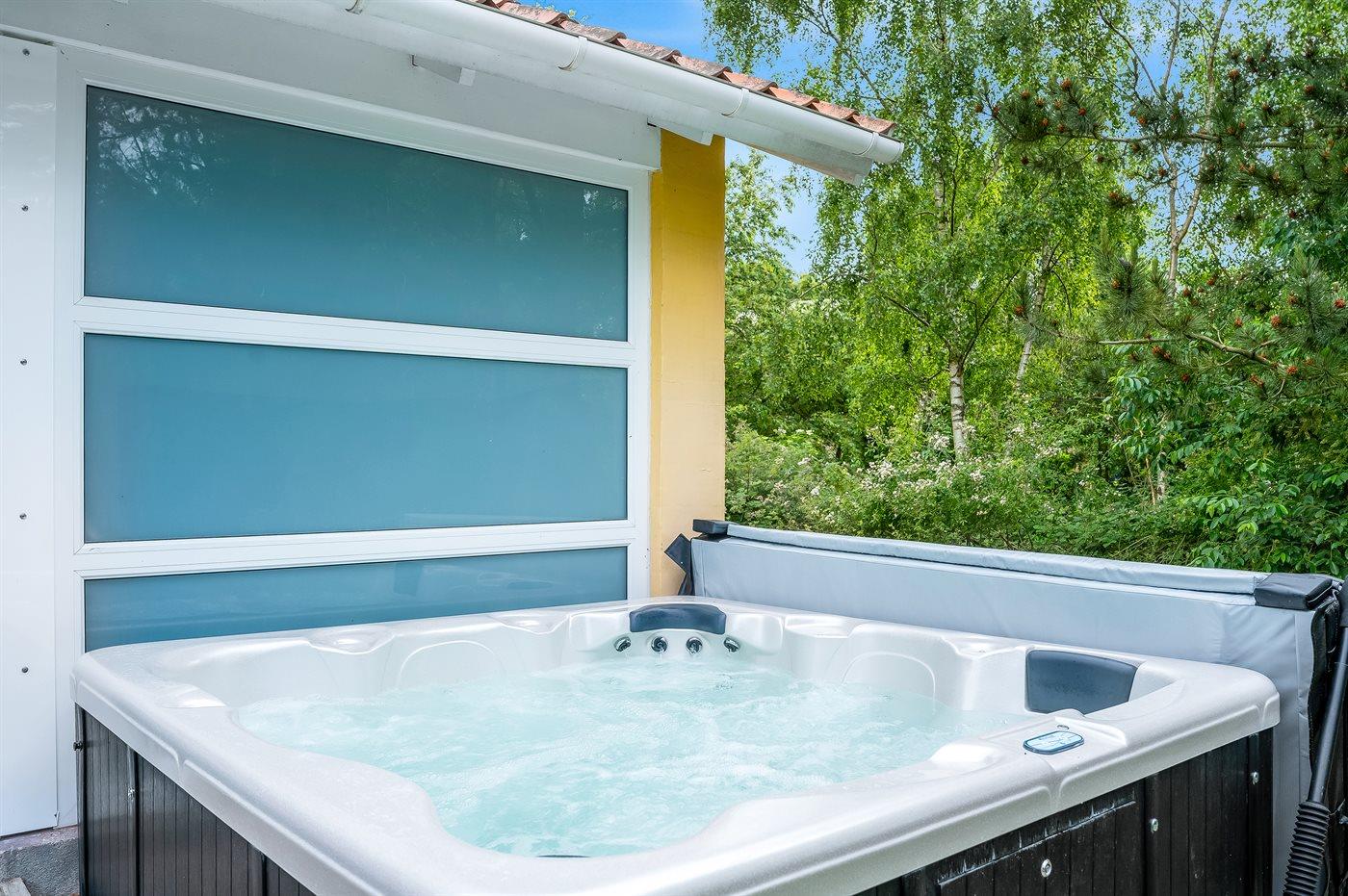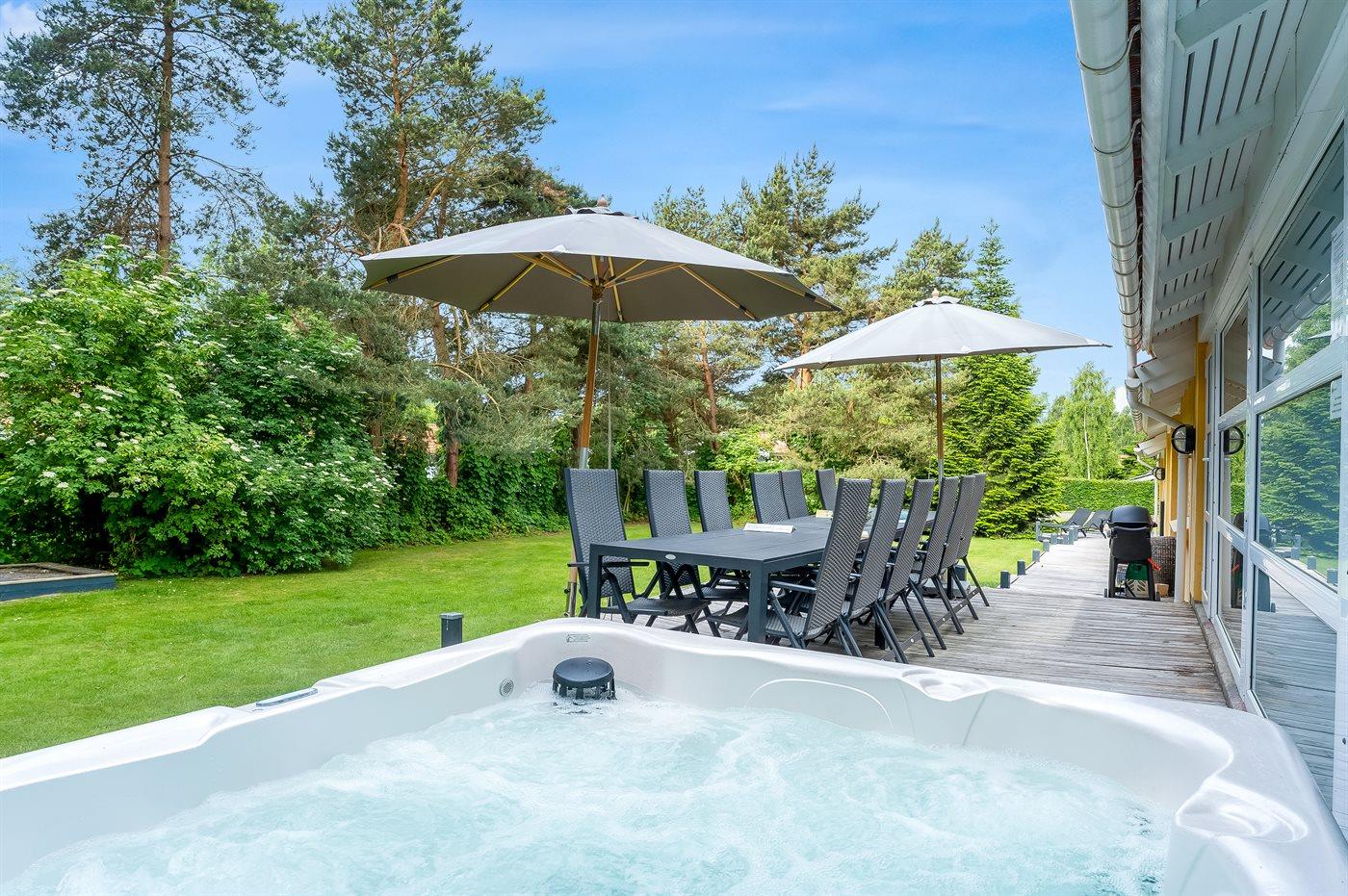 Der er mulighed for afslapning i udendørs standvandsspa til 6 personer.