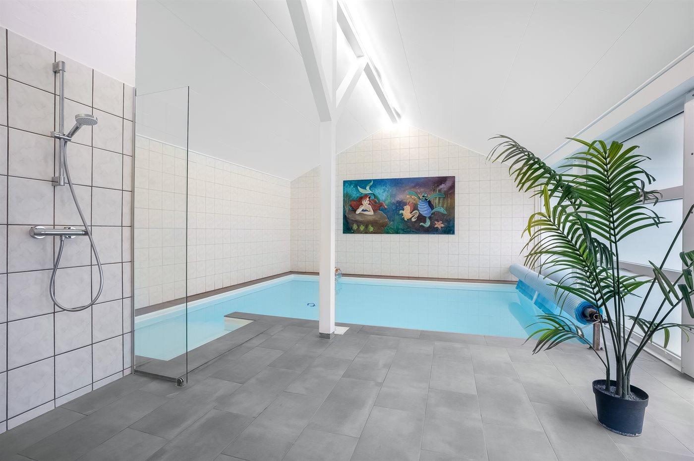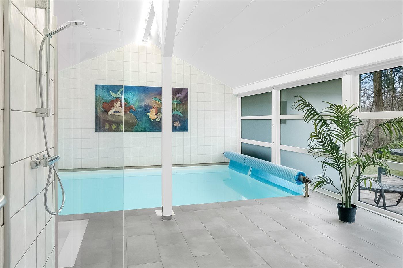 I den indendørs swimmingpool er der mulighed for leg og hyggeligt samvær. Swimmingpoolen måler op til 3,45 m i bredden, 4,8 m i længden og den er op til 1,3 m dyb. Vandet er mellem 24 og 28° C varmt. Til de små er der desuden børnepool. Der er gulvvarme i swimmingpoolområdet.