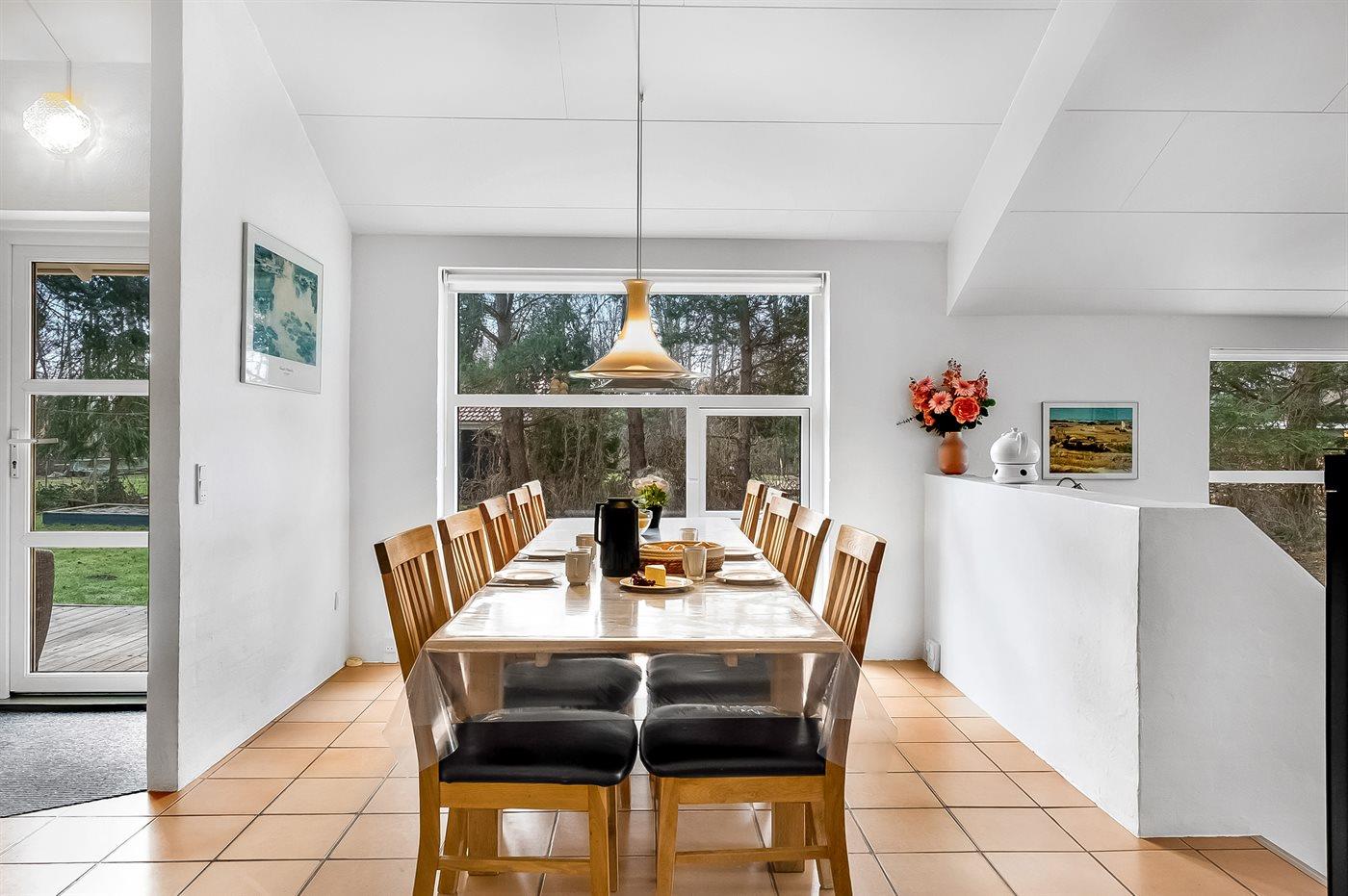 Dette dejlige og lyst indrettede sommerhus ligger på en stor grund i et eftertragtet ferieområde. Til huset hører et dejligt og til dels overdækket terrasseareal, hvor man kan sidde og nyde hyggelige timer i det fri alt imens man kan holde øje med børnene der leger på grunden.