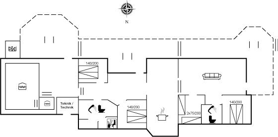 Huset er indrettet med 4 soveværelser samt en stor og lys hems, hvor der findes yderligere 4 sovepladser.