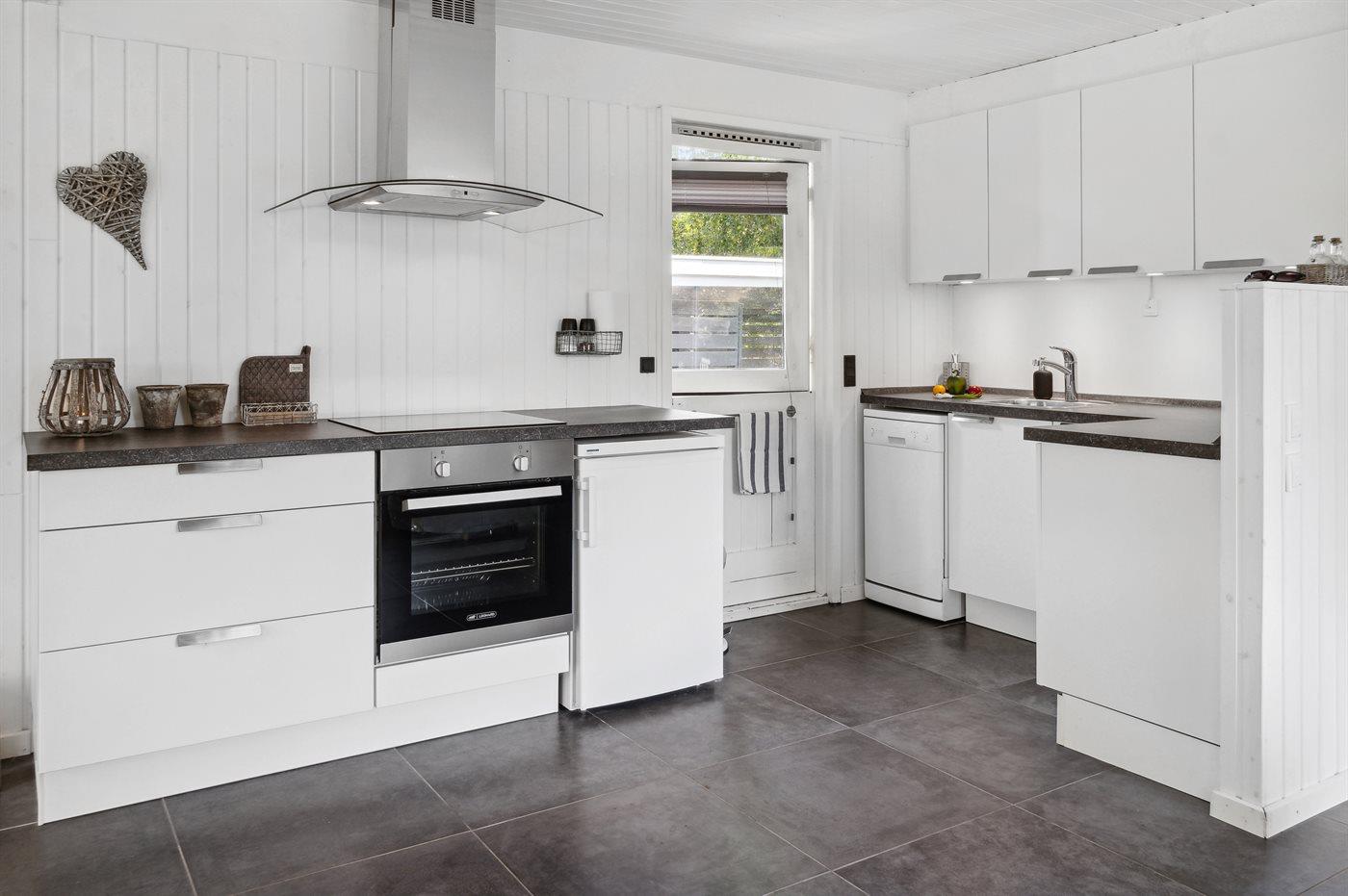 Køkkenet er udstyret med 1 køleskab. Der er 4 induktionskogeplader, varmluftovn, mikrobølgeovn samt opvaskemaskine.