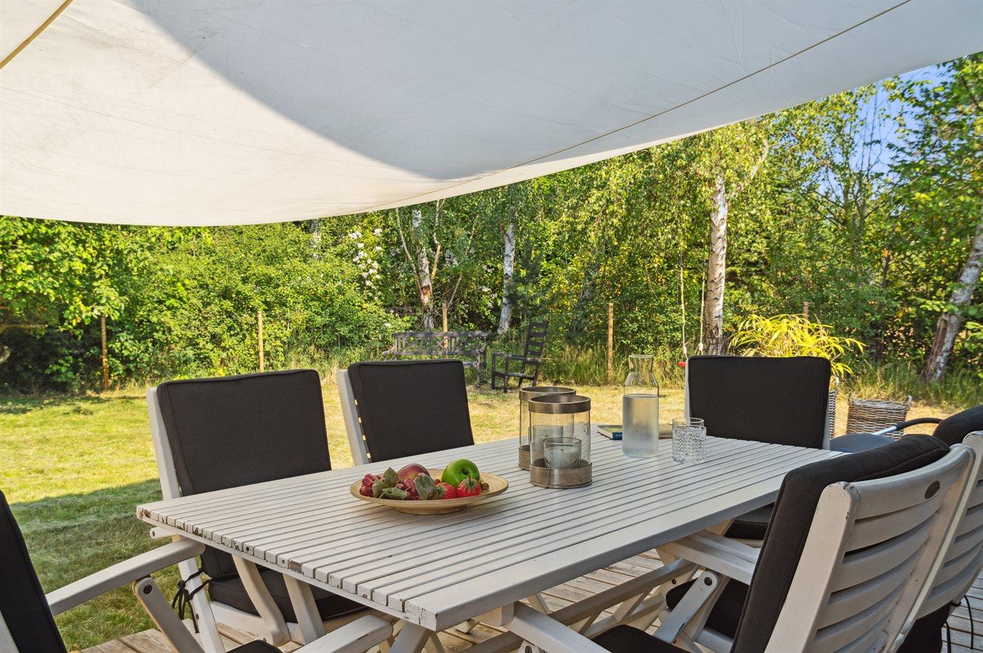 Huset ligger på en over 1200 m2 stor grund, så der er god plads til udendørsaktiviteter for den aktive familie.