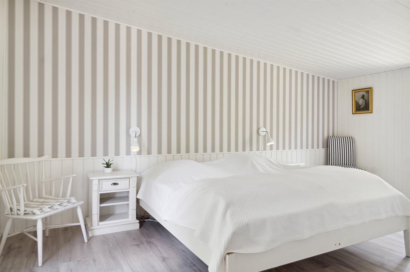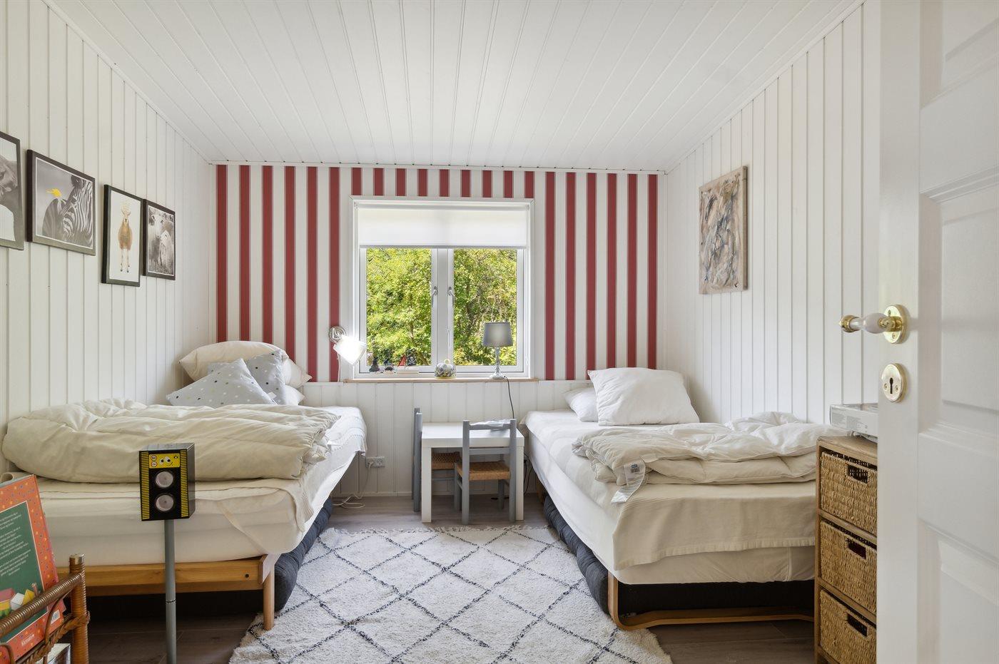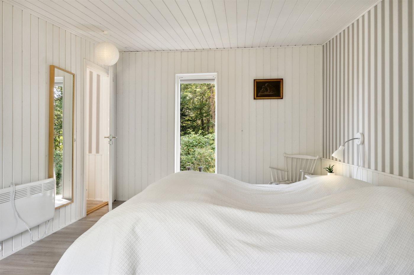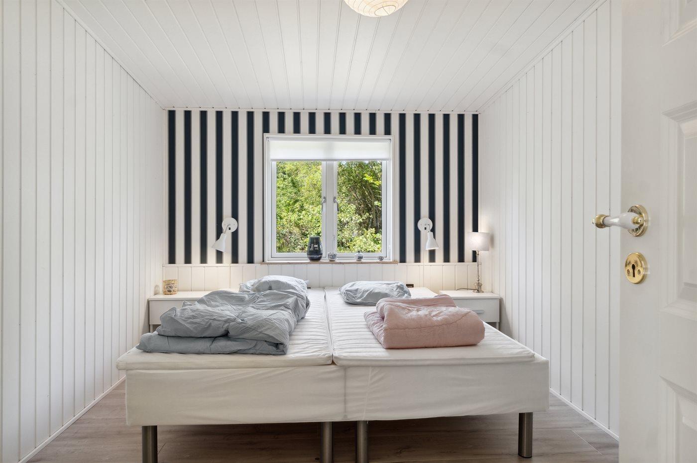 Der er i alt 4 soveværelser. Sovepladserne fordeler sig på: 6 sovepladser i dobbeltsenge. 2 sovepladser i enkeltsenge.