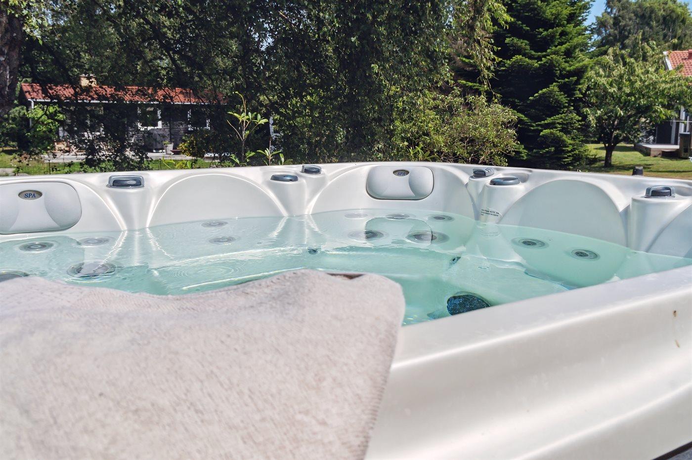Der er mulighed for afslapning i udendørs standvandsspa til 4 personer.