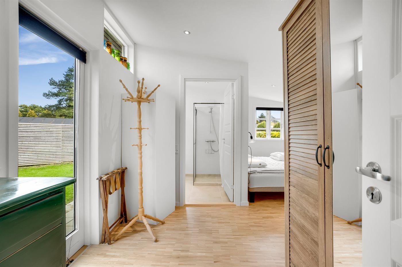 Med egen indgang fra haven findes et vaskerum med vaskemaskine og et ekstra køleskab med frys. Frysekapacitet i alt 140 liter.