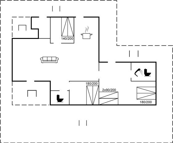 1. soveværelse indeholder en dobbeltseng 180x200, samt en dobbeltseng 2x90x200