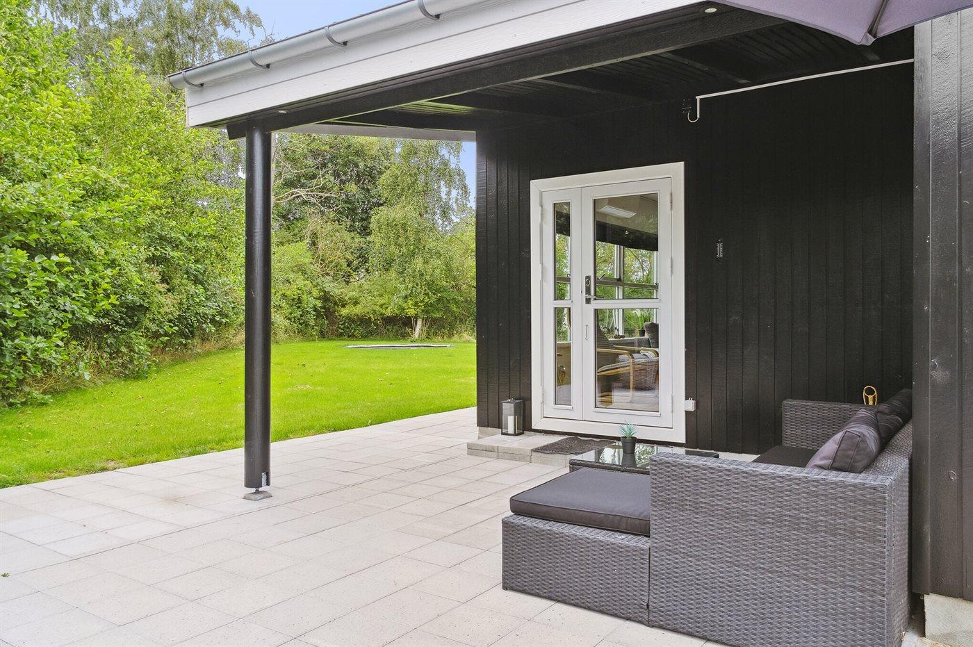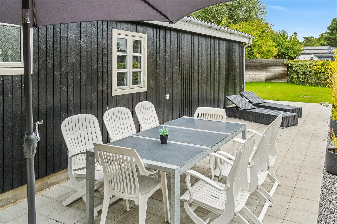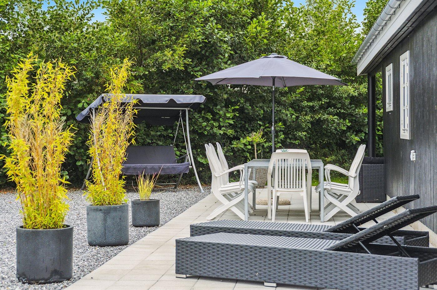 Sommerhuset ligger på en 1060 m² stor havegrund, der er helt indhegnet. Der findes et stort åbent terrasseareal, samt en mindre overdækket terrasse. I haven er der en trampolin og et hyggeligt bålsted. Hele området er meget roligt, og der er god plads både i sommerhuset og i haven til mange timers aktivitet for familien. Grill til rådighed. I perioden fra den 01.04 til den 01.10 er der udendørs bruser til rådighed. God plads til parkering ved ferieboligen.