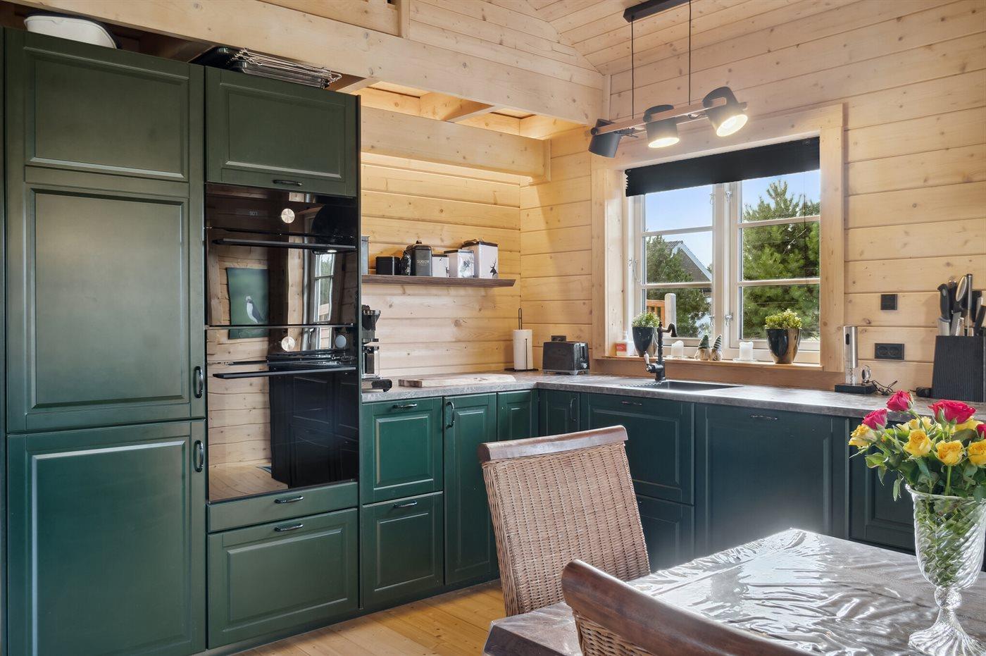 Køkkenet er udstyret med 2 køleskabe. Der er 4 induktionskogeplader, varmluftovn, mikrobølgeovn samt opvaskemaskine.