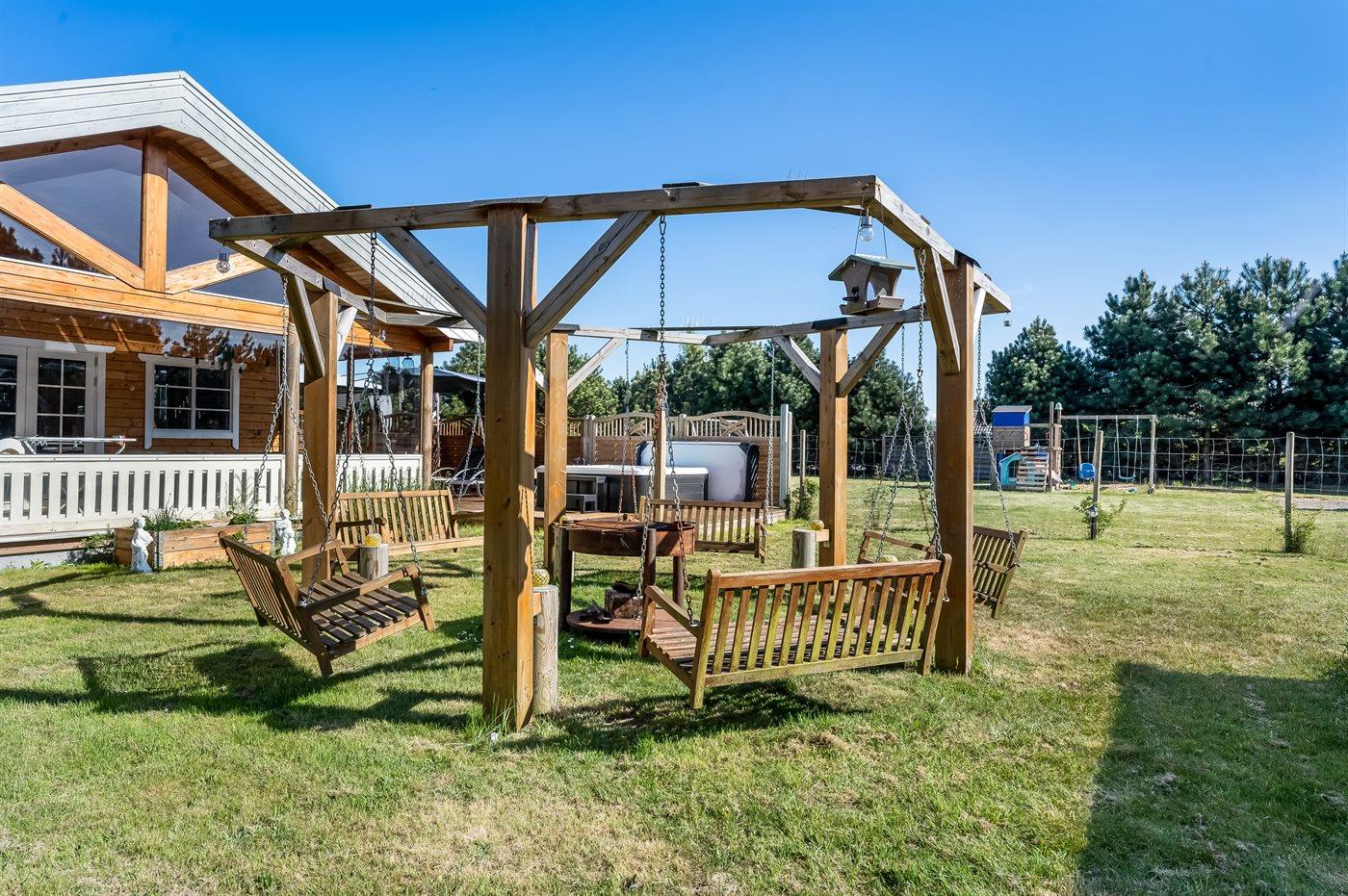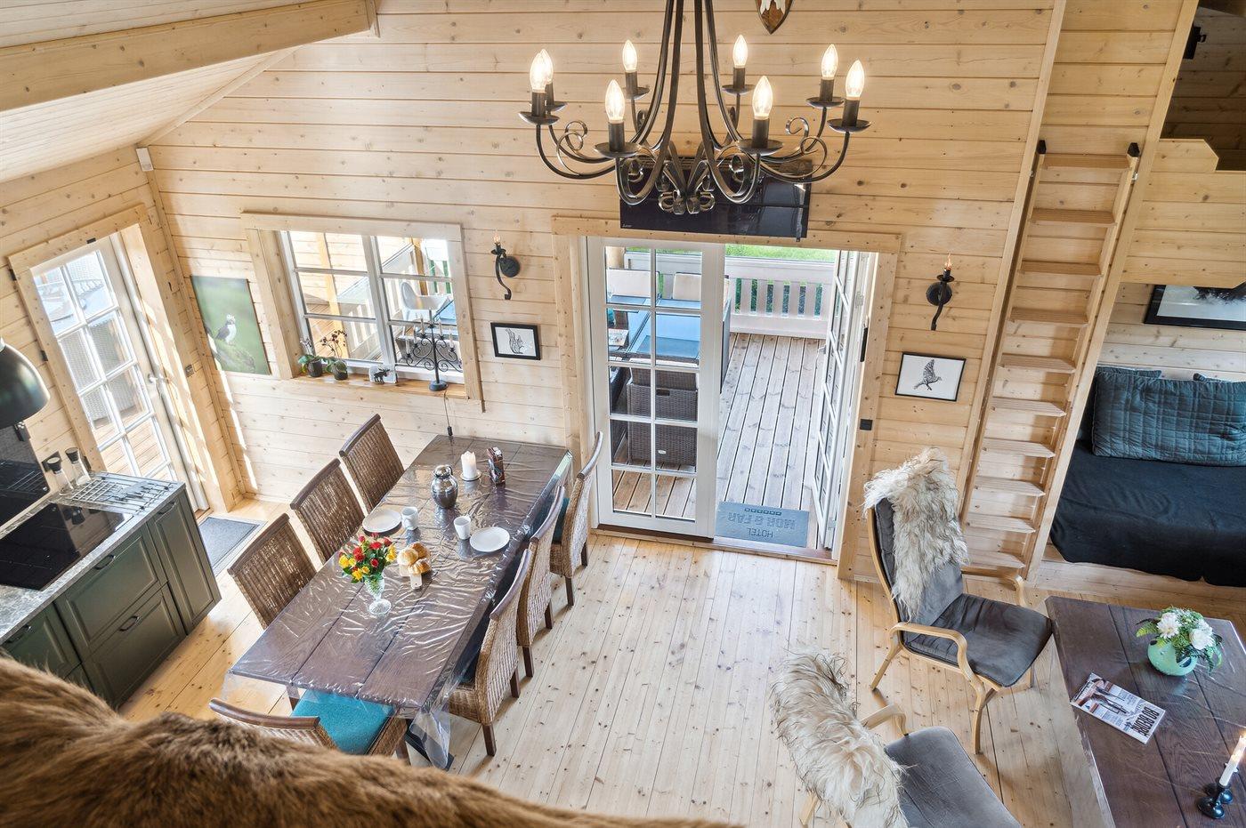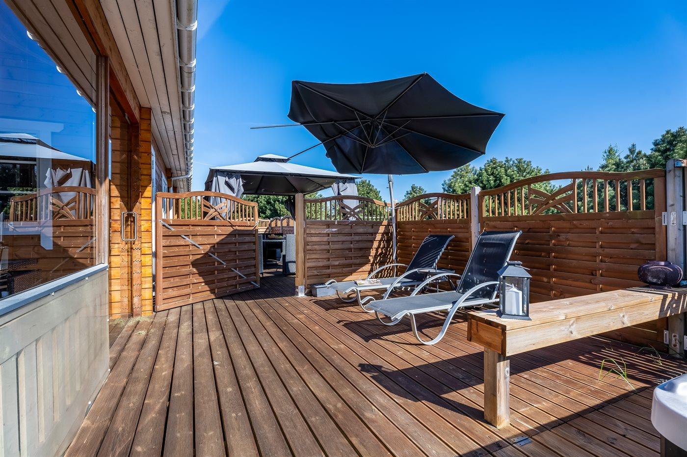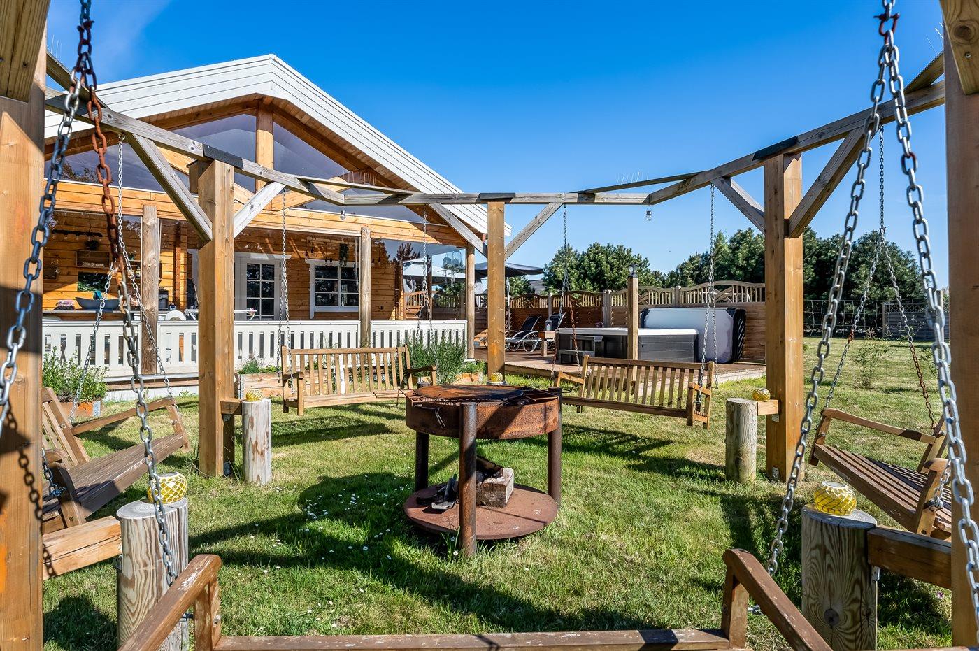 Velkommen til et sommerhus der på rigtig mange områder skiller sig positivt ud fra mængden. Huset er indrettet, så der er mange hyggeområder både for små og store samtidig med, at man fornemmer samværet med de øvrige, der er med på ferie. Er man til udeliv, byder dette hus på virkelig fine løsninger for fællesskab og hygge. Det være sig lige fra den store udendørs grill med hængesofaer rundt om, udendørs spa, shelteren, legepladsen, til det dejlige grill-hus.