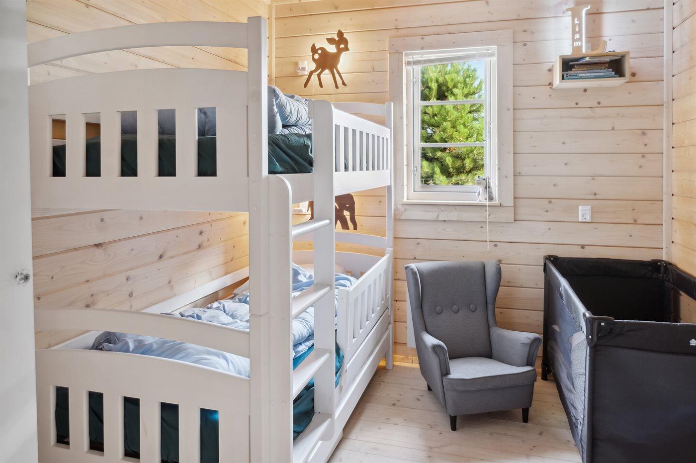 Der er i alt 3 soveværelser. Sovepladserne fordeler sig på: 4 sovepladser i dobbeltsenge. 4 sovepladser i enkeltsenge. 2 sovepladser i køjeseng. 4 af disse sovepladser befinder sig på husets hems. Derudover er der 2 stk. barnesenge.