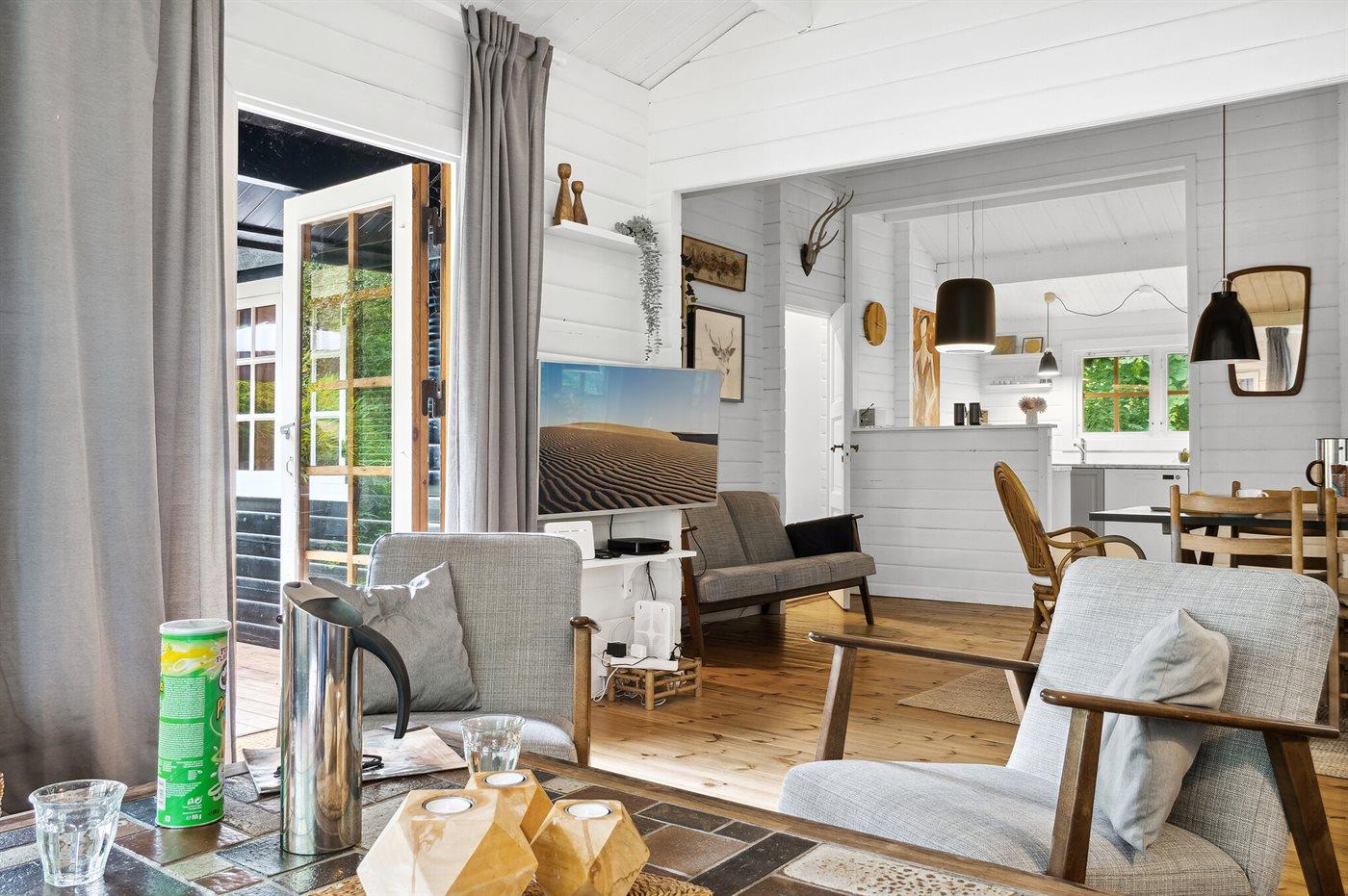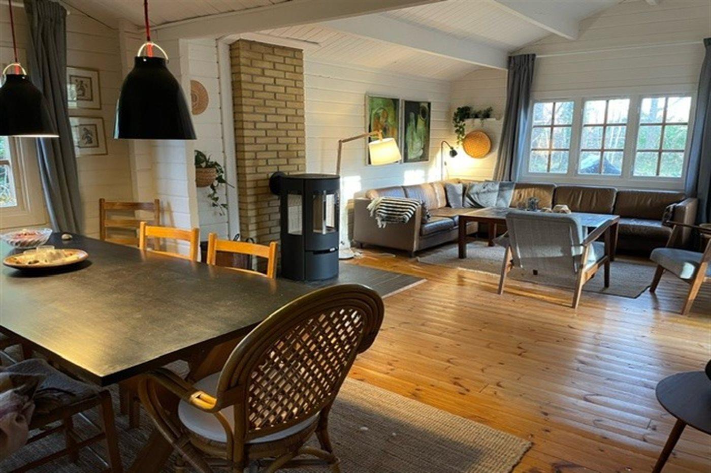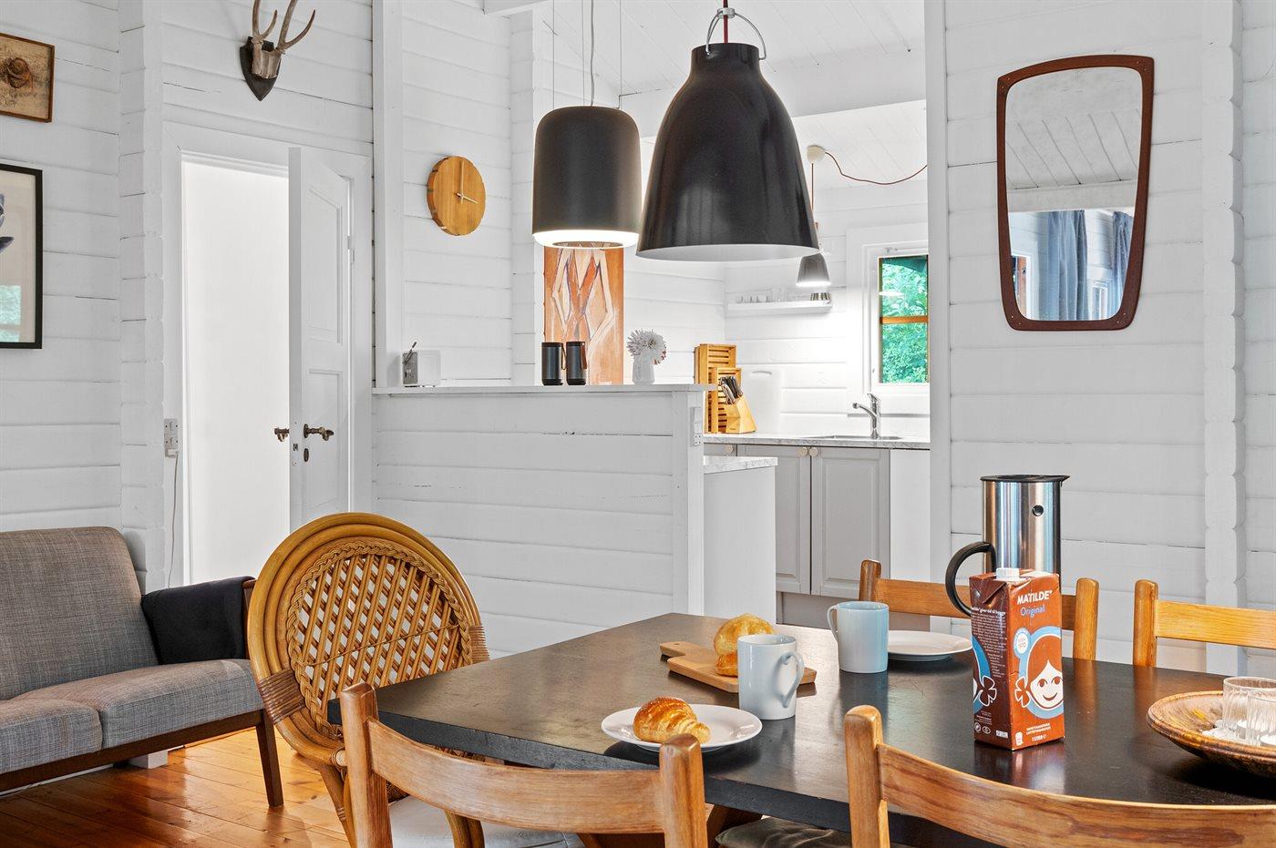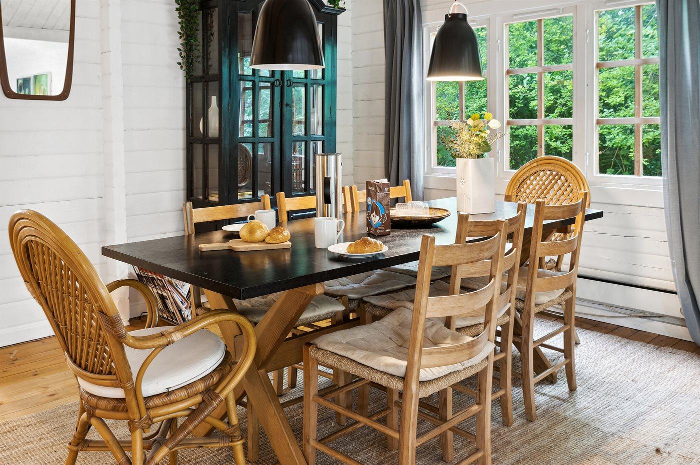Huset er godt indrettet, så man kan trække sig tilbage i soveværelserne, mens der stadig hygges i stuen. Terrassen og haven byder på mange muligheder for både sol og skygge.