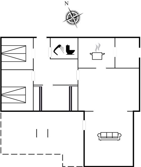 Der er i alt 3 soveværelser. Sovepladserne fordeler sig på: 4 sovepladser i dobbeltsenge. 4 sovepladser i køjesenge.