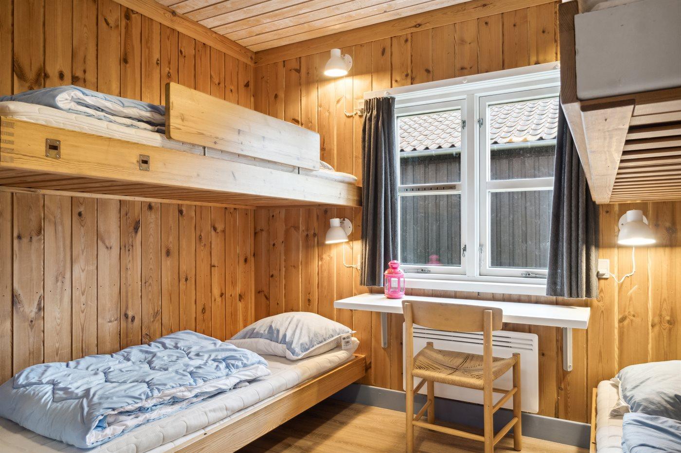 Der er i alt 2 soveværelser. Sovepladserne fordeler sig på: 2 sovepladser i dobbeltseng. 4 sovepladser i køjesenge.