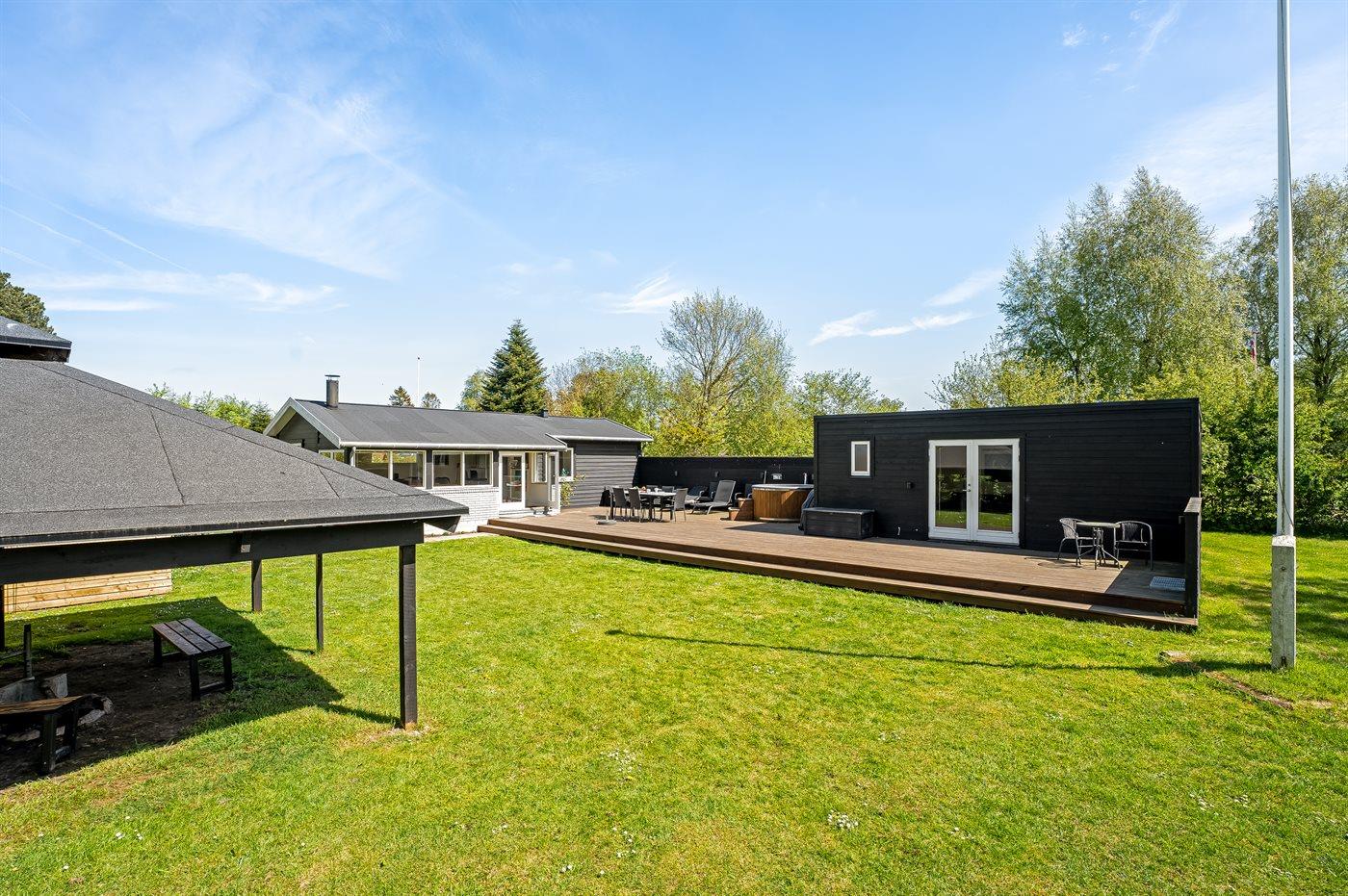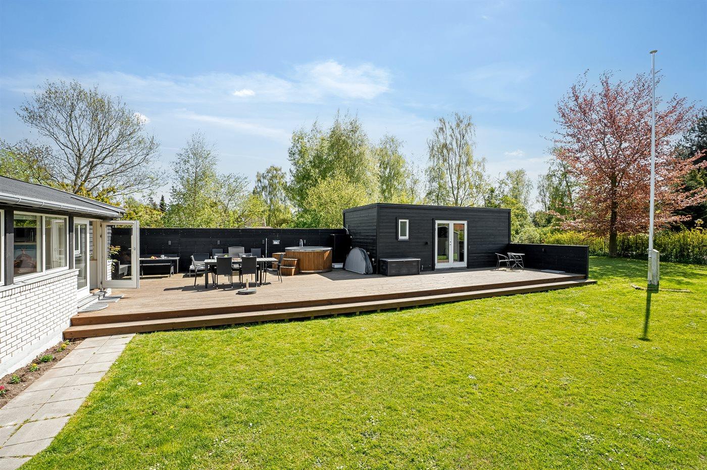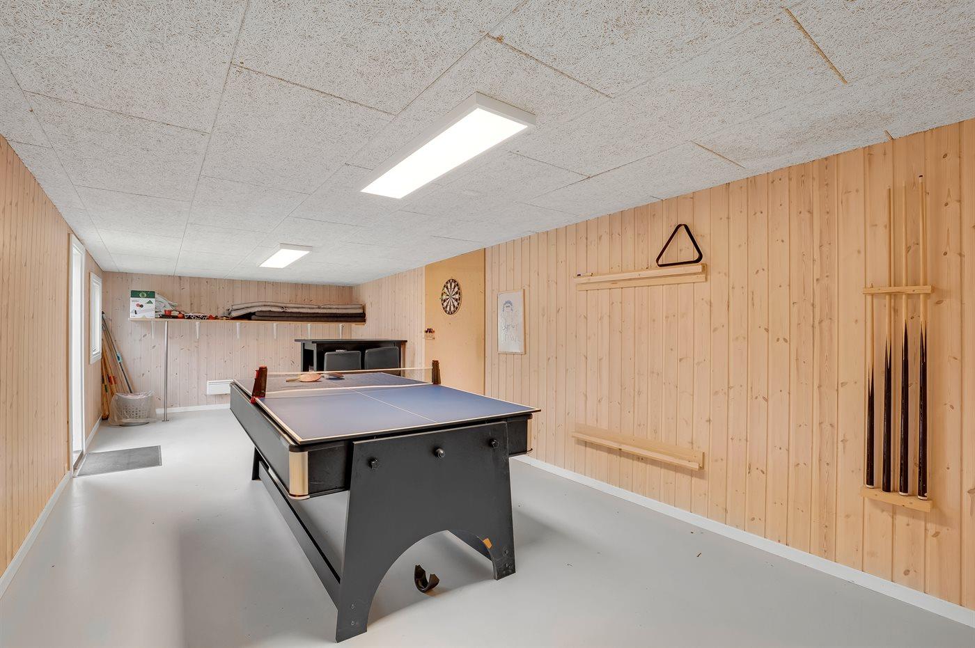 Fra terrassen er der også adgang til det store anneks med 2 ekstra soveværelser og 1 ekstra badeværelse. Ligeledes findes et separat aktivitetsrum med billard, bordtennis, bordfodbold samt dart. Perfekt til et par hyggelige timer sammen med familie og venner. Slut dagen med et glas vin og nogle gode bøffer på grillen. Måske overnatter du i shelteret, som du ligeledes finder på grunden.