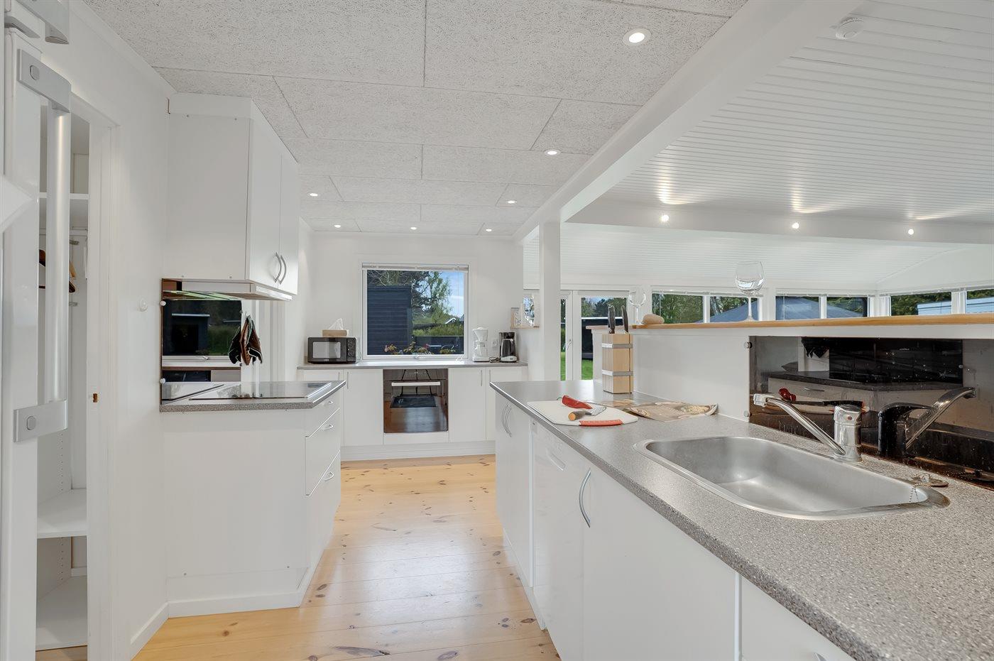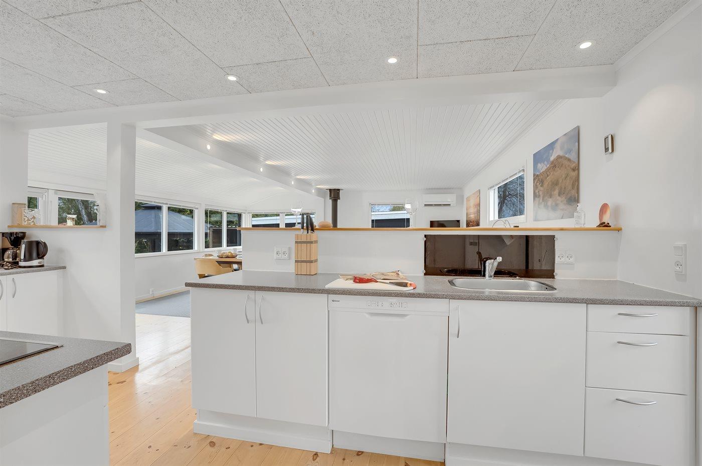 Køkkenet er udstyret med 1 køleskab. Der er 4 keramiske kogeplader, varmluftovn, mikrobølgeovn samt opvaskemaskine.