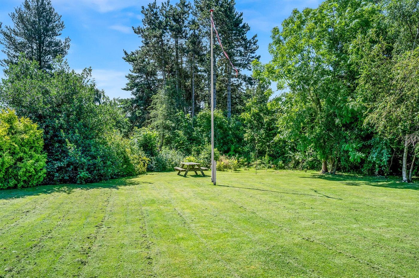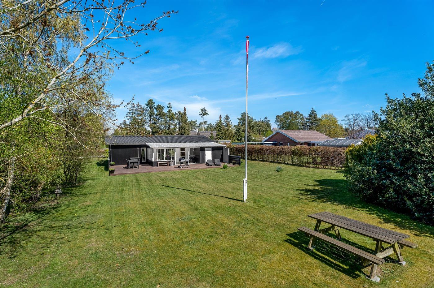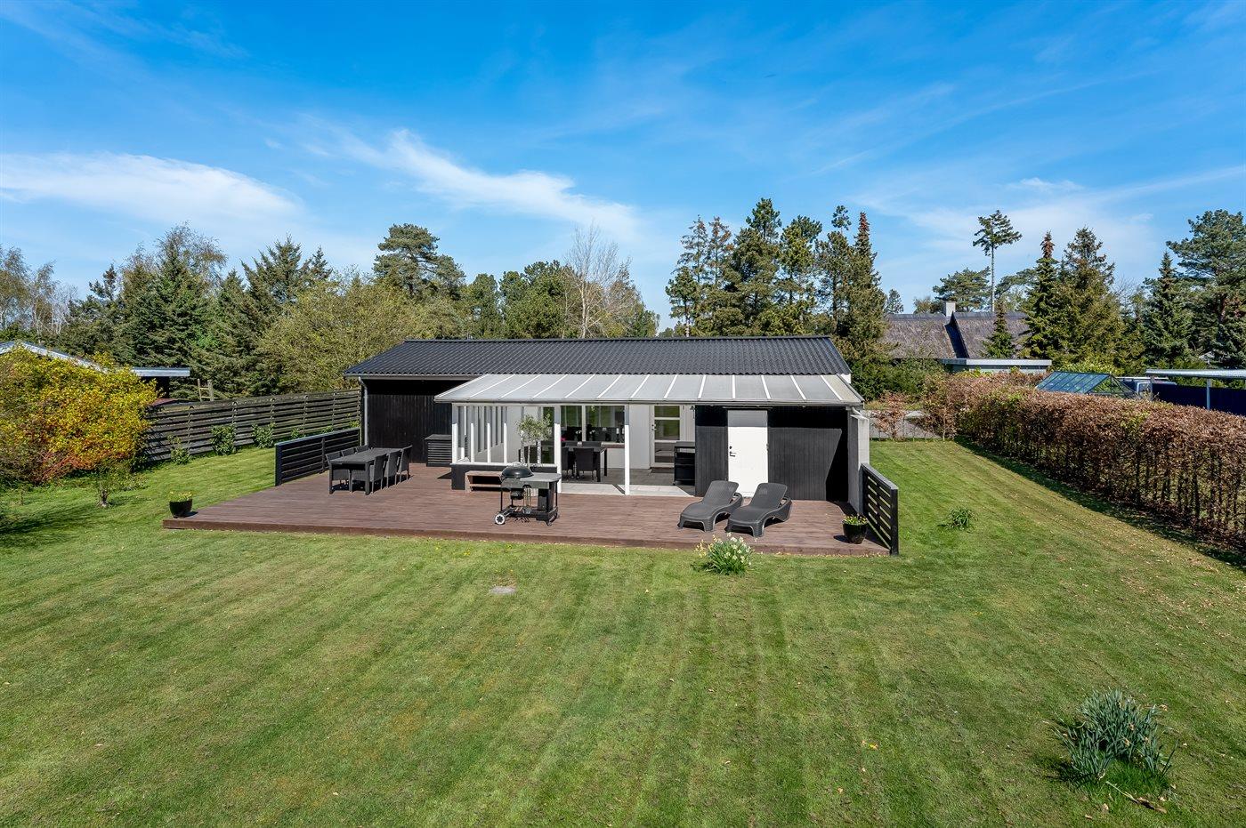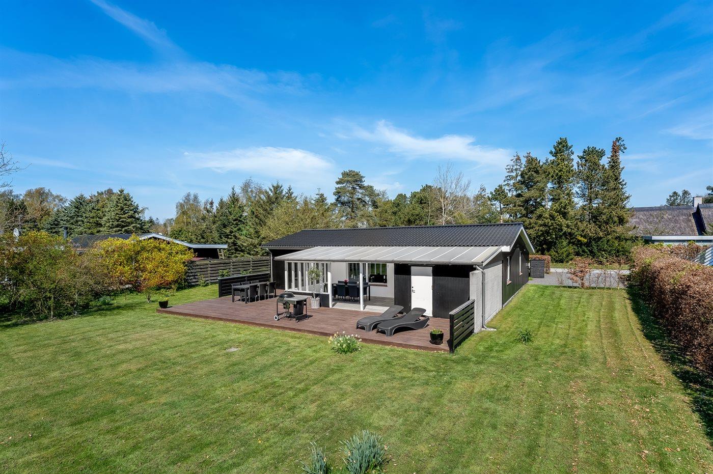 Ferieboligen er beliggende på en 1098 m² stor havegrund. Der er 500 m til havet. Nærmeste forretning er beliggende i en afstand af 1000 m. Der er en golfbane i en afstand af 1500 m. Til ferieboligen hører åbent terrasseareal. Desuden er der overdækket terrasse. Grill til rådighed. Der er installeret stik til opladning af elbil. Type 2 stik. Parkering ved ferieboligen.