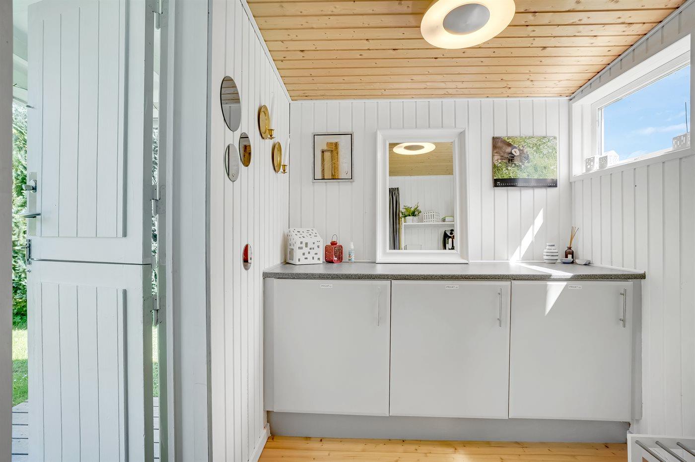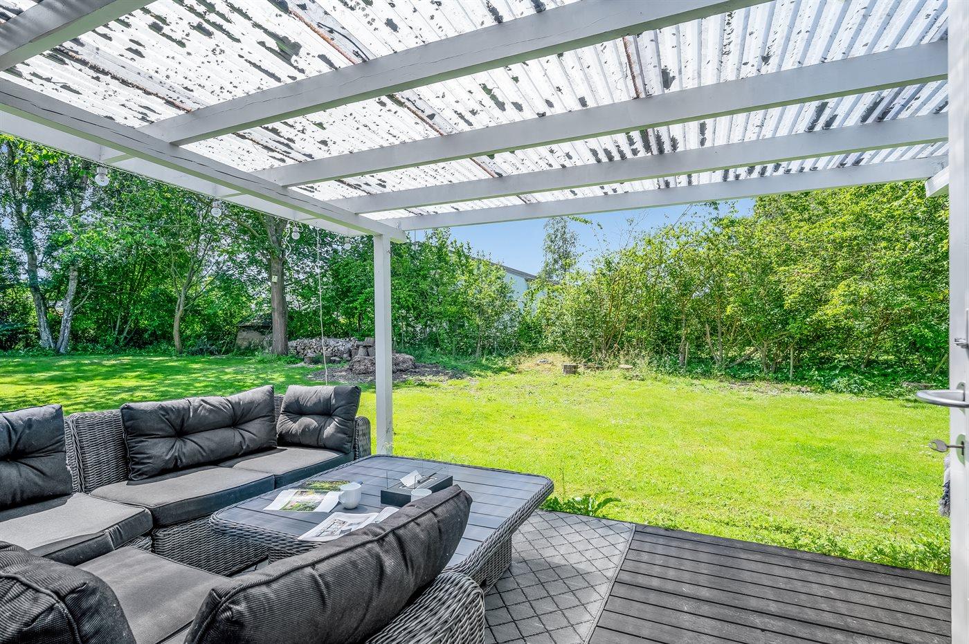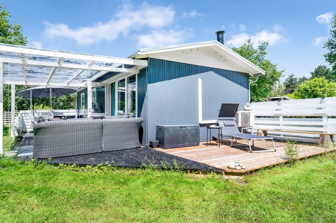 Ferieboligen er beliggende på en 1058 m² stor havegrund. Der er 500 m til havet. Nærmeste forretning er beliggende i en afstand af 1400 m. Til ferieboligen hører åbent terrasseareal. Desuden er der overdækket terrasse. Bålsted. Grill til rådighed. Parkering ved ferieboligen.