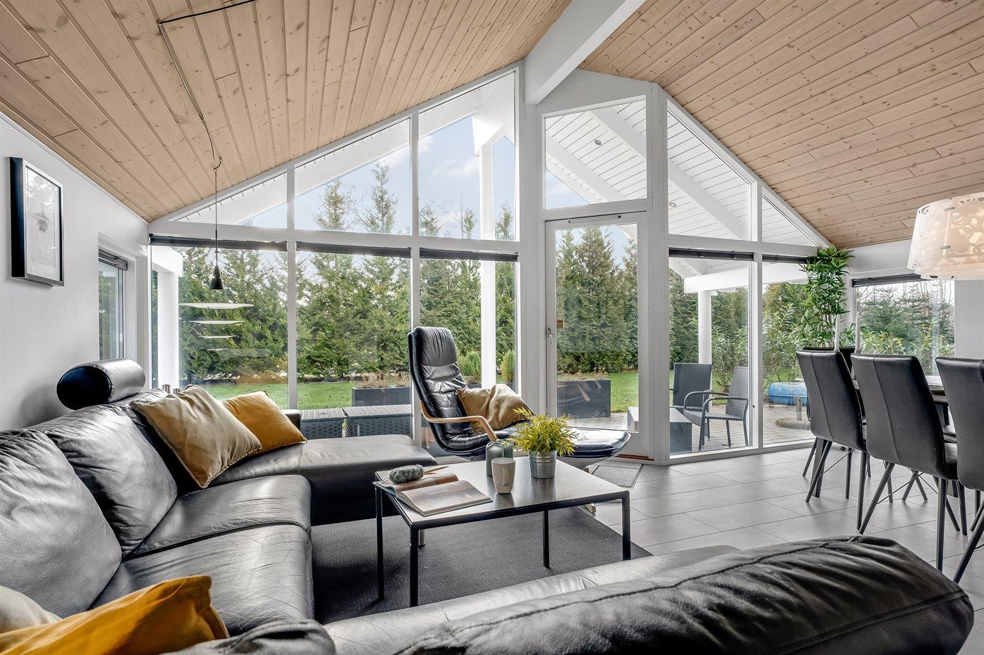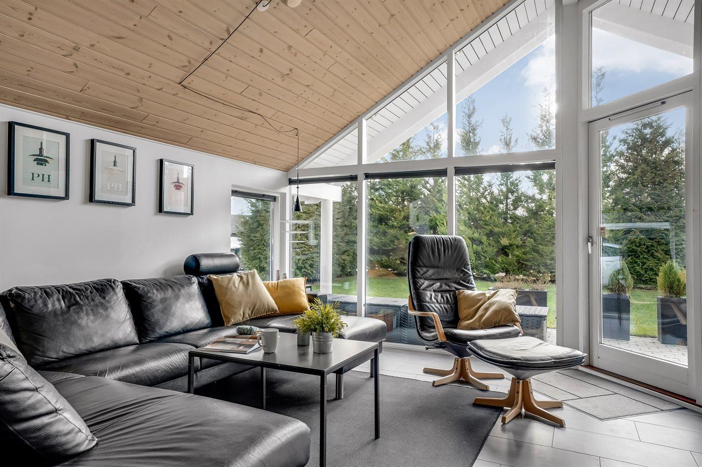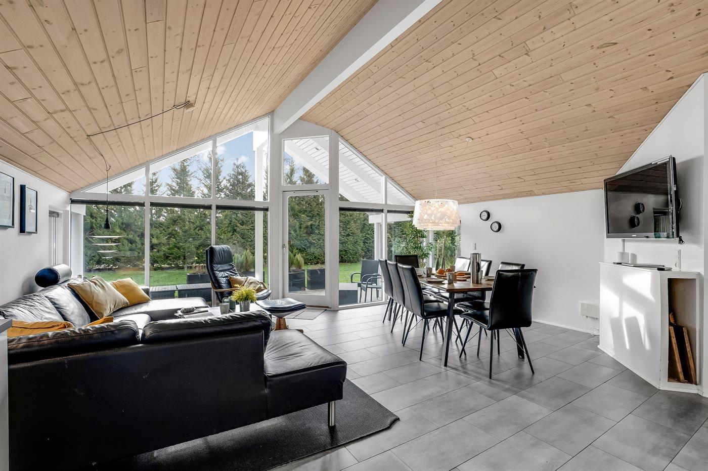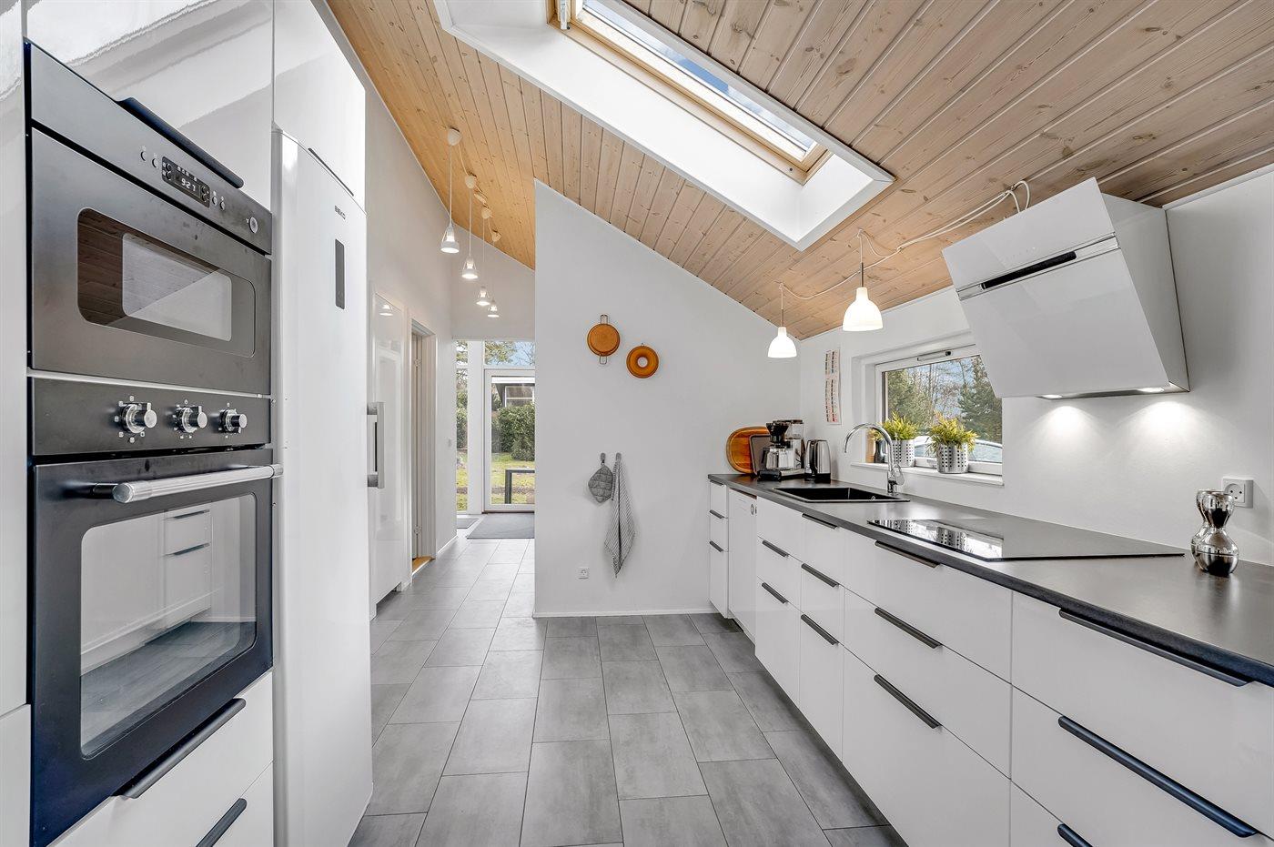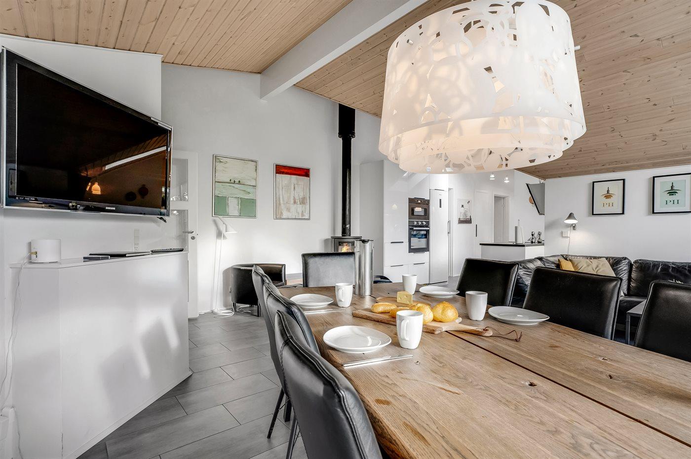 Sommerhusets køkken er veludstyret med alt, hvad nutiden stiller af krav, og i stuen kan den knitrende ild fra brændeovnen nydes.