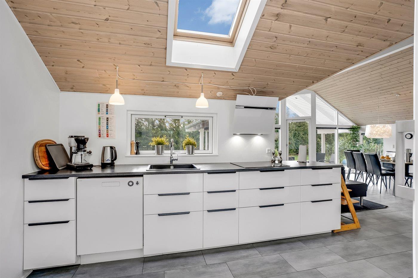 Køkkenet er udstyret med 1 køleskab. Der er 4 induktionskogeplader, varmluftovn, mikrobølgeovn samt opvaskemaskine.
